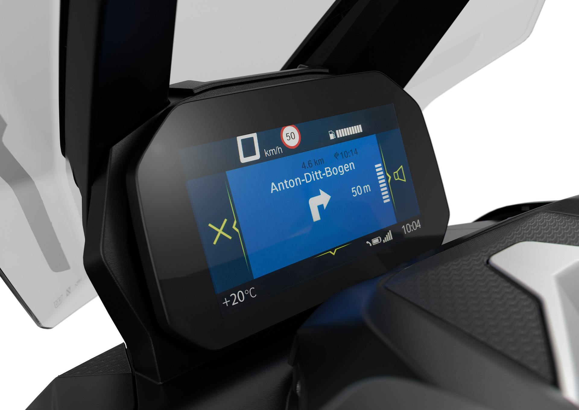 In addition to complying with EU-5 homologation, the revised drive impresses riders above all with an even smoother and more sensitive throttle response as well as increased idling stability. In addition to E-gas and new engine management, the optimized springs for the centrifugal clutch also contribute to increasing engine running stability. Other additions are the optimized ASC with automatic radius calibration. The brake system of the new C 400 X and C 400 GT has also been revised. Furthermore, in addition to the 12-volt onboard socket, the front right storage compartment is now equipped with a USB charging socket.