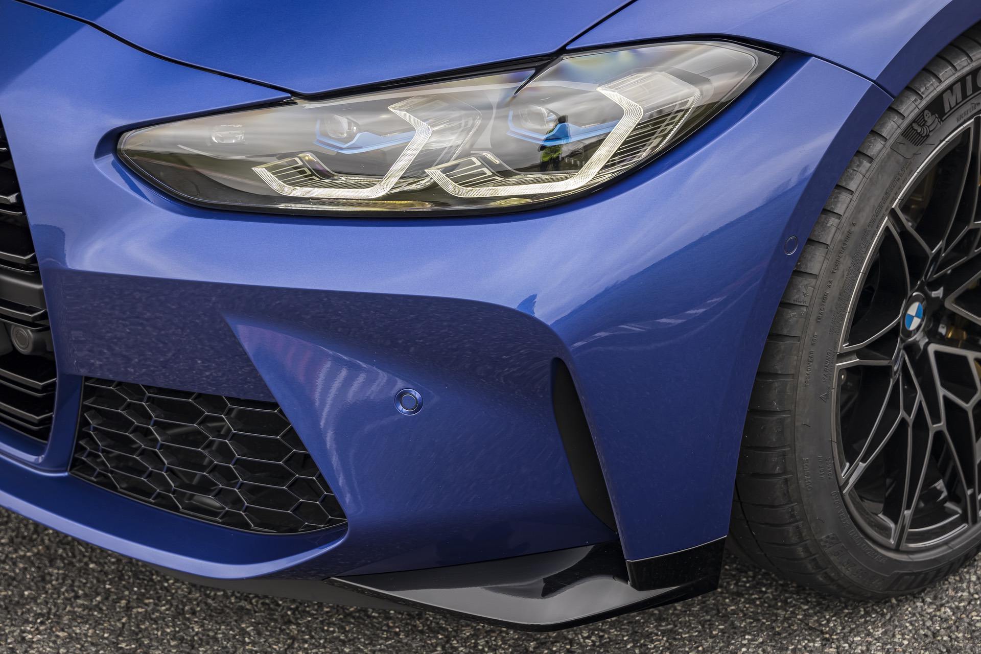 Courtesy of BMW France, we bring you a new photo gallery featuring the 2021 BMW M4 Competition in the stunning Portimao Blue Metallic color. The beautiful shade of blue made its debut on BMW series cars along with the G20 3 Series generation and it was the launch color for the M340i Sedan. In this photoshoot, the Portimao Blue exterior was paired with the Silverstone Merino Leather trim, one of the many options for the interior design.