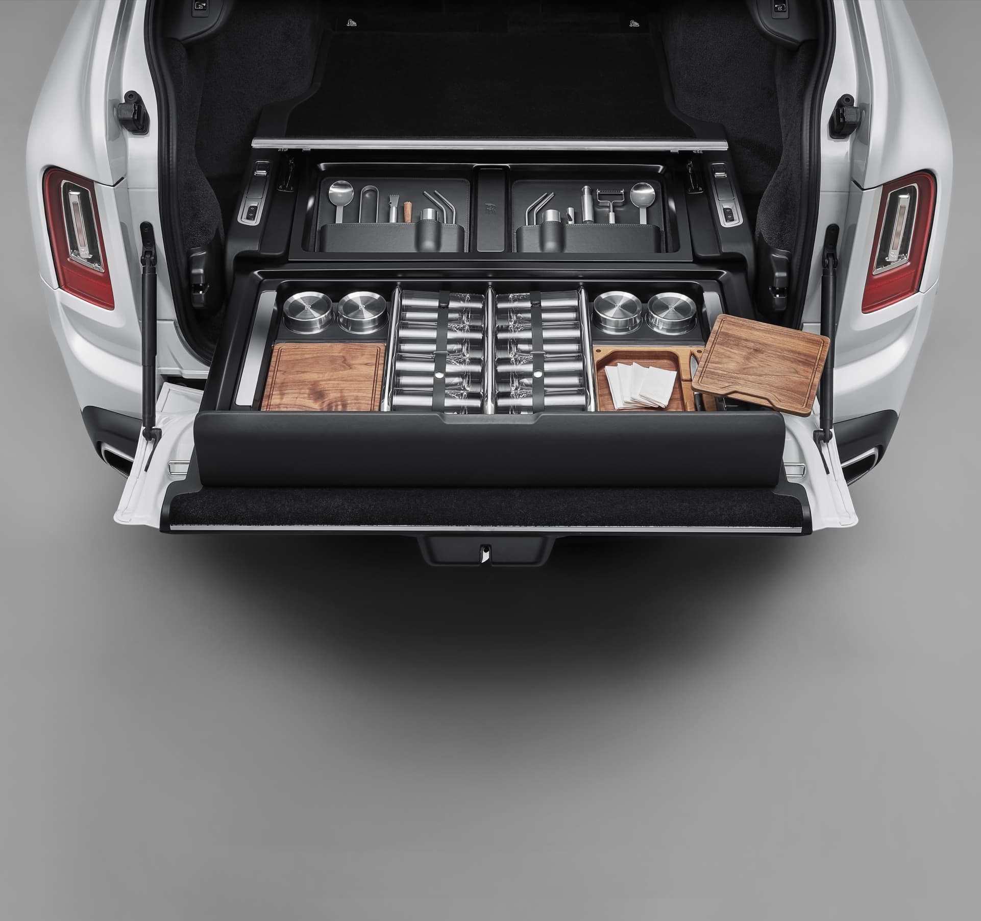 The Rolls-Royce Cullinan is one of the best selling products ever released by ultra-luxurious British car maker. From the get go it was created as a vehicle that would allow you to go anywhere in absolute comfort, and effortless. But it can do far more than that. After introducing the Viewing Suite back when the Cullinan was initially unveiled – a set of seats that can fold under the boot floor at the touch of a button – the Goodwood engineers are now introducing a new Bespoke feature for the Cullinan, the Recreation Module. This is basically a motorized drawer cassette designed to fit securely and invisibly into the luggage compartment floor of Cullinan.