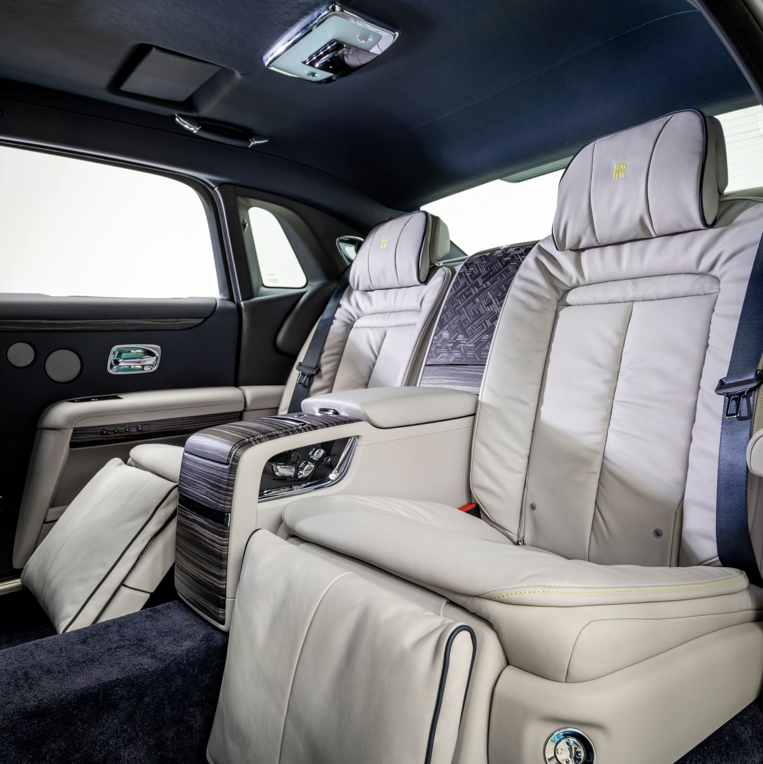 Additionally, the car’s Technical Fiber fascia veneer has been hand-painted with a geometric pattern inspired by skyscraper windows illuminated by night, the rear ‘Waterfall’ between the two rear seats is embellished with embroidery recalling the exterior motif, while the seat piping is finished in Koi Red.