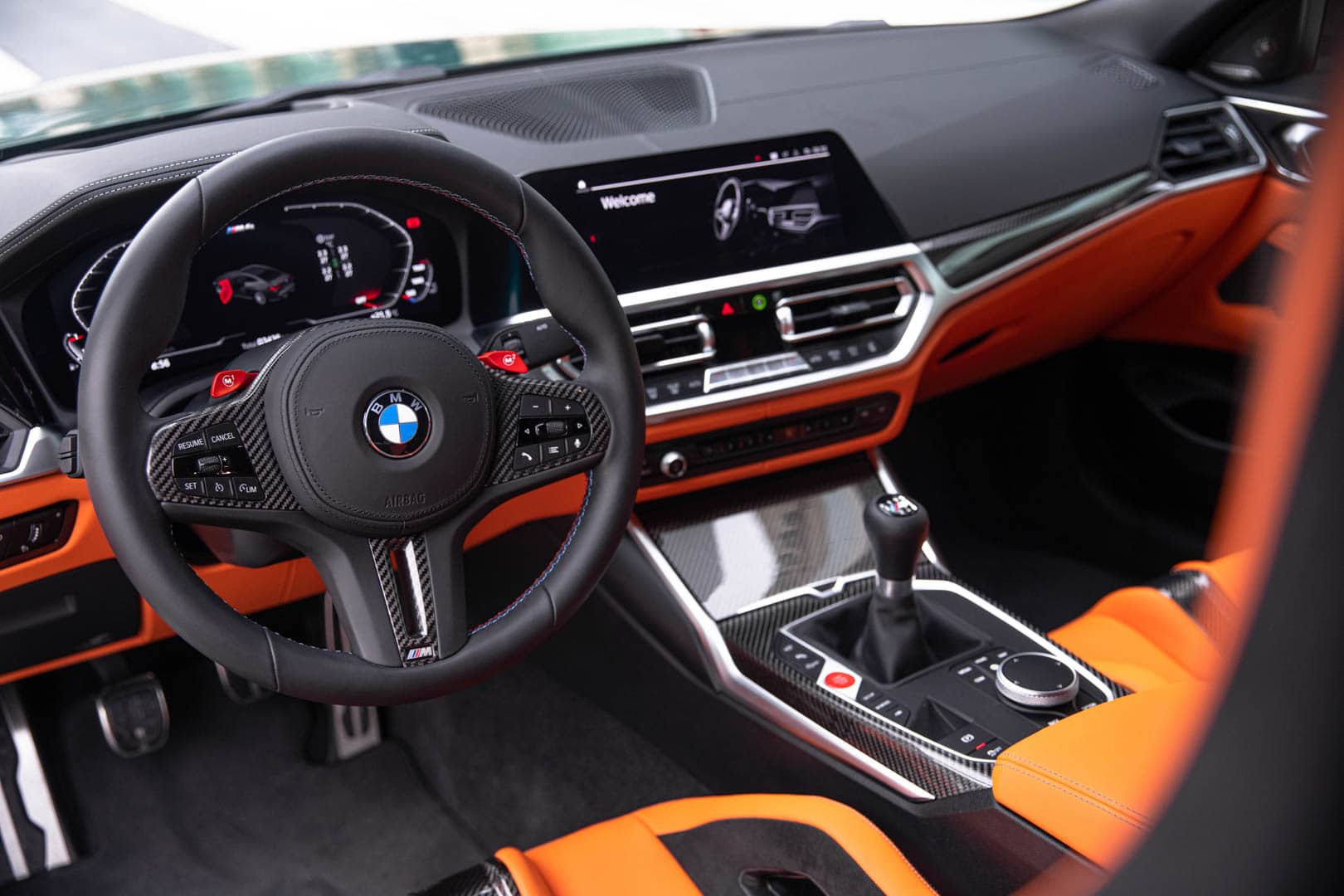 The cars on hand were all Competition models, both the BMW M3 and BMW M4. Which means they all had the uprated version of their 3.0 liter twin-turbocharged inline-six, making 503 horsepower (510 PS) and 442 lb-ft of torque (600 Nm). All engines were mated to an eight-speed automatic transmission, as all Competition models are, and rear-wheel drive. While the BMW M3 and M4 will be getting xDrive all-wheel drive, a first for an M3/M4 model, it’s not yet available so the cars in these photos were rear-drive models.