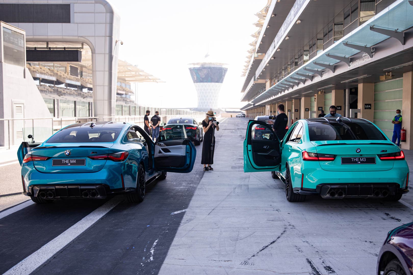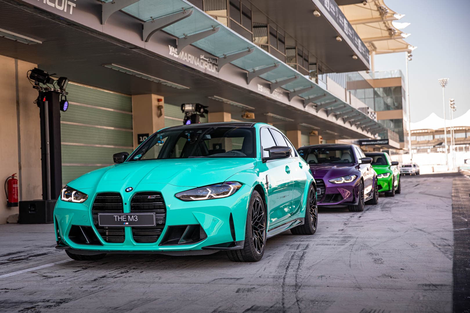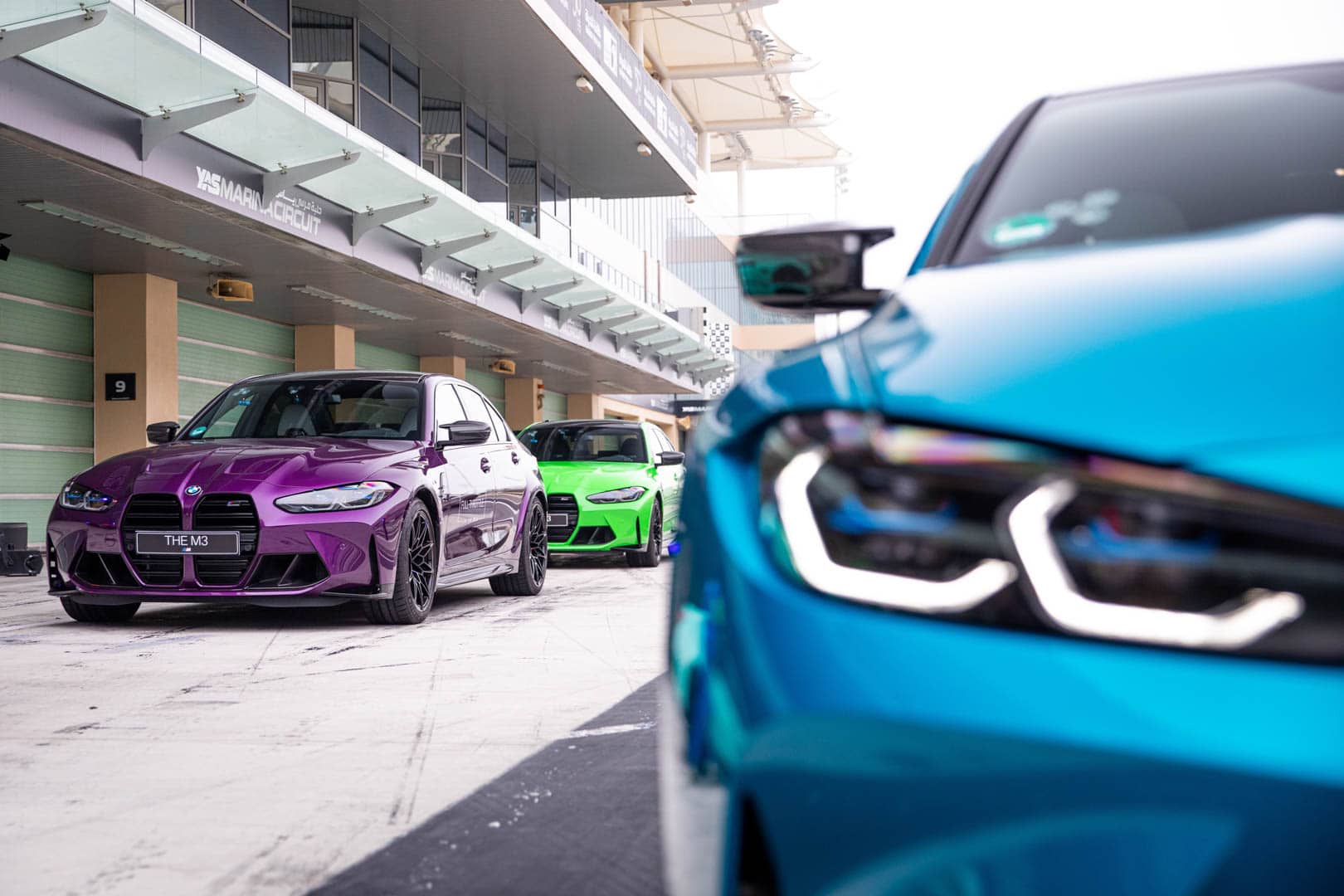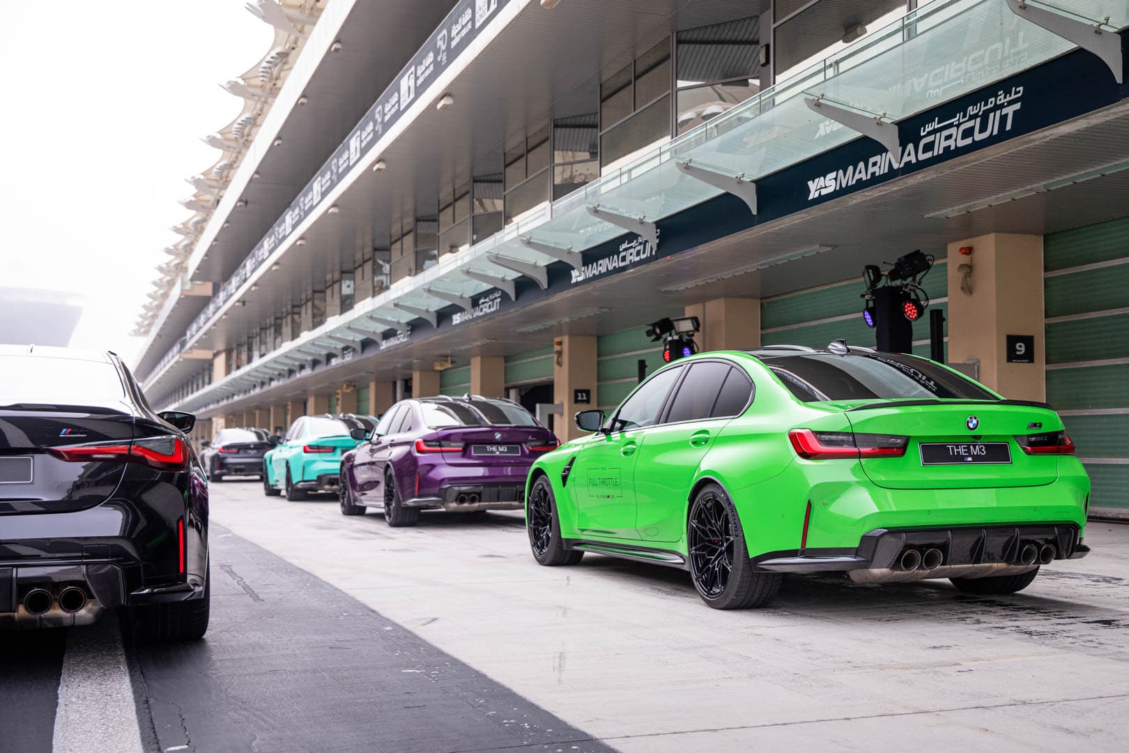 BMW sells a lot of Individual-painted M cars in the middle east, with BMW Abu Dhabi Motors being a dealership famous for having some of the most fantastically-spec’d Bimmers on sale. So it’s only fitting that BMW Group Middle East recently held an M Day event at the Yas Marina circuit in Abu Dhabi, with a bunch of BMW Individual colored BMW M3 and M4 models. When us ‘Mericans go to a press launch, the color palette is typically that of a newspaper’s, so we’re kind of jealous that members of media were able to go and drive these wonderfully colored M cars.