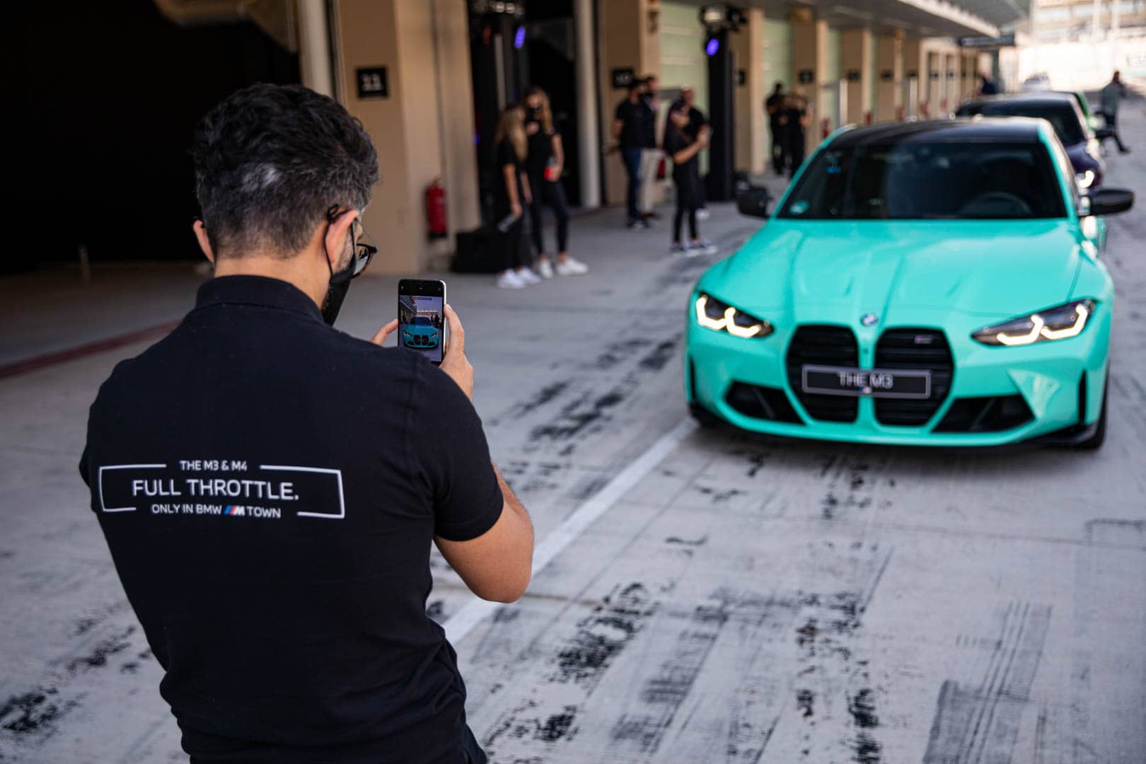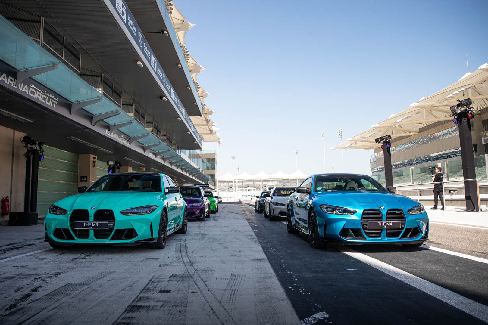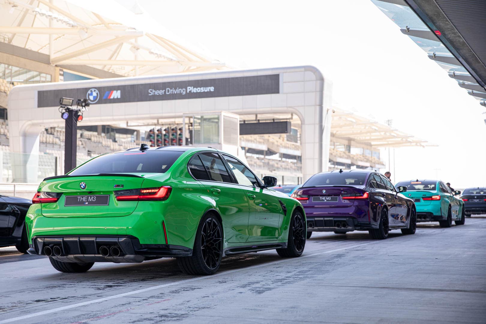 BMW sells a lot of Individual-painted M cars in the middle east, with BMW Abu Dhabi Motors being a dealership famous for having some of the most fantastically-spec’d Bimmers on sale. So it’s only fitting that BMW Group Middle East recently held an M Day event at the Yas Marina circuit in Abu Dhabi, with a bunch of BMW Individual colored BMW M3 and M4 models. When us ‘Mericans go to a press launch, the color palette is typically that of a newspaper’s, so we’re kind of jealous that members of media were able to go and drive these wonderfully colored M cars.