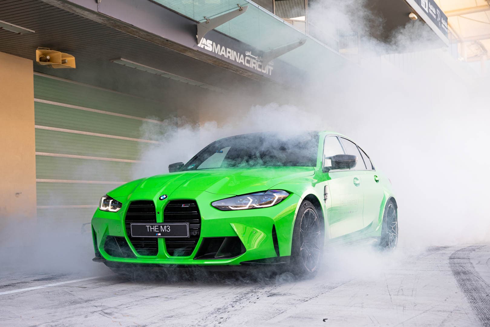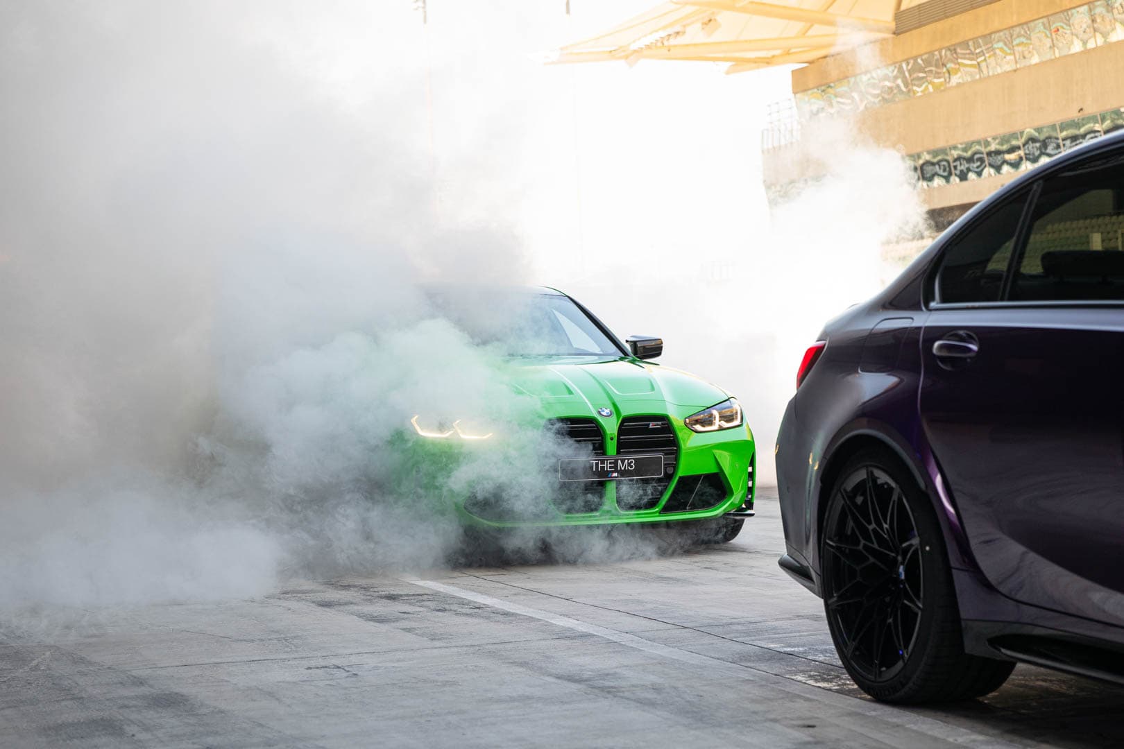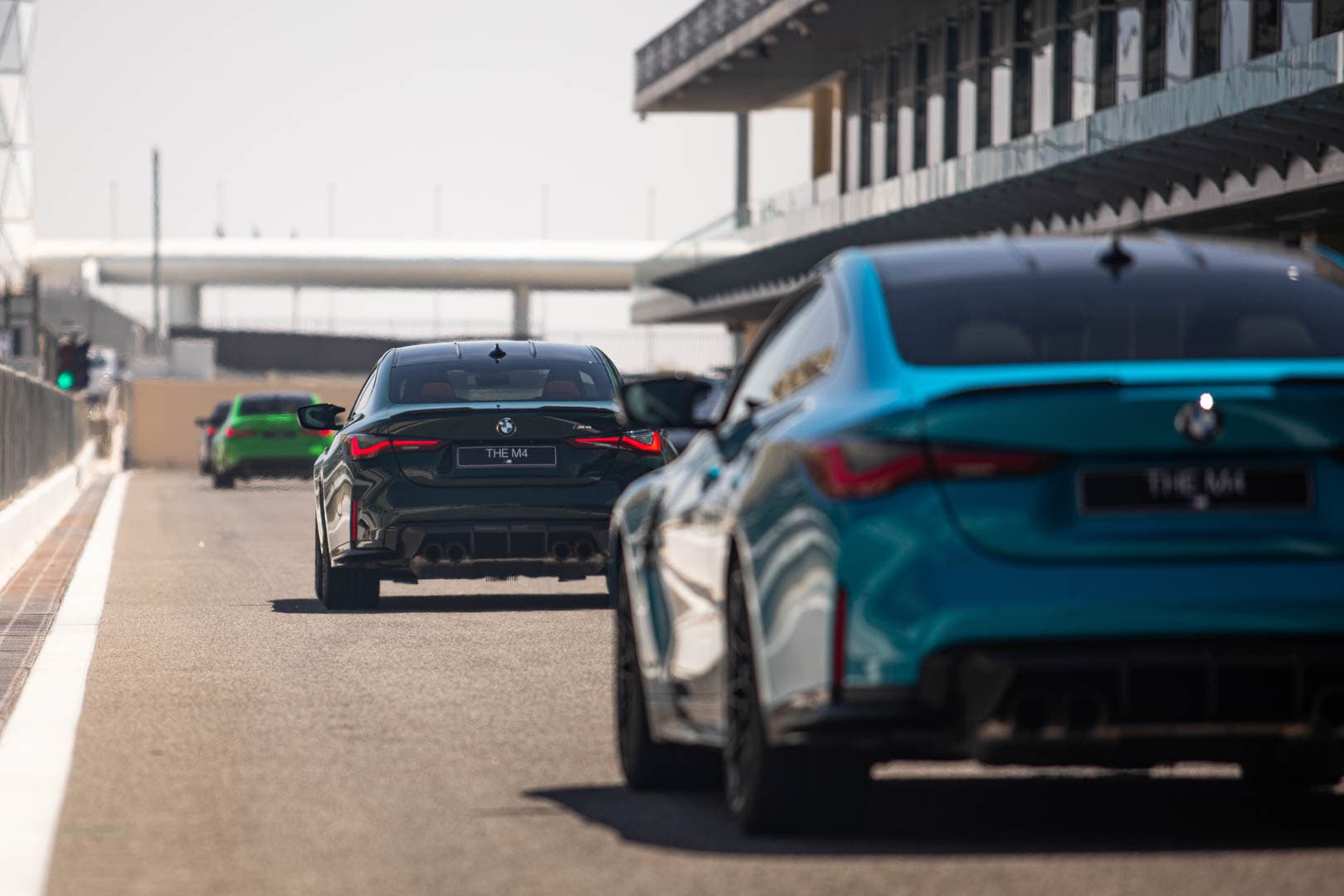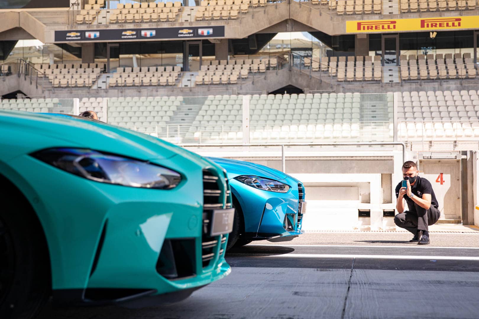 BMW sells a lot of Individual-painted M cars in the middle east, with BMW Abu Dhabi Motors being a dealership famous for having some of the most fantastically-spec’d Bimmers on sale. So it’s only fitting that BMW Group Middle East recently held an M Day event at the Yas Marina circuit in Abu Dhabi, with a bunch of BMW Individual colored BMW M3 and M4 models. When us ‘Mericans go to a press launch, the color palette is typically that of a newspaper’s, so we’re kind of jealous that members of media were able to go and drive these wonderfully colored M cars.