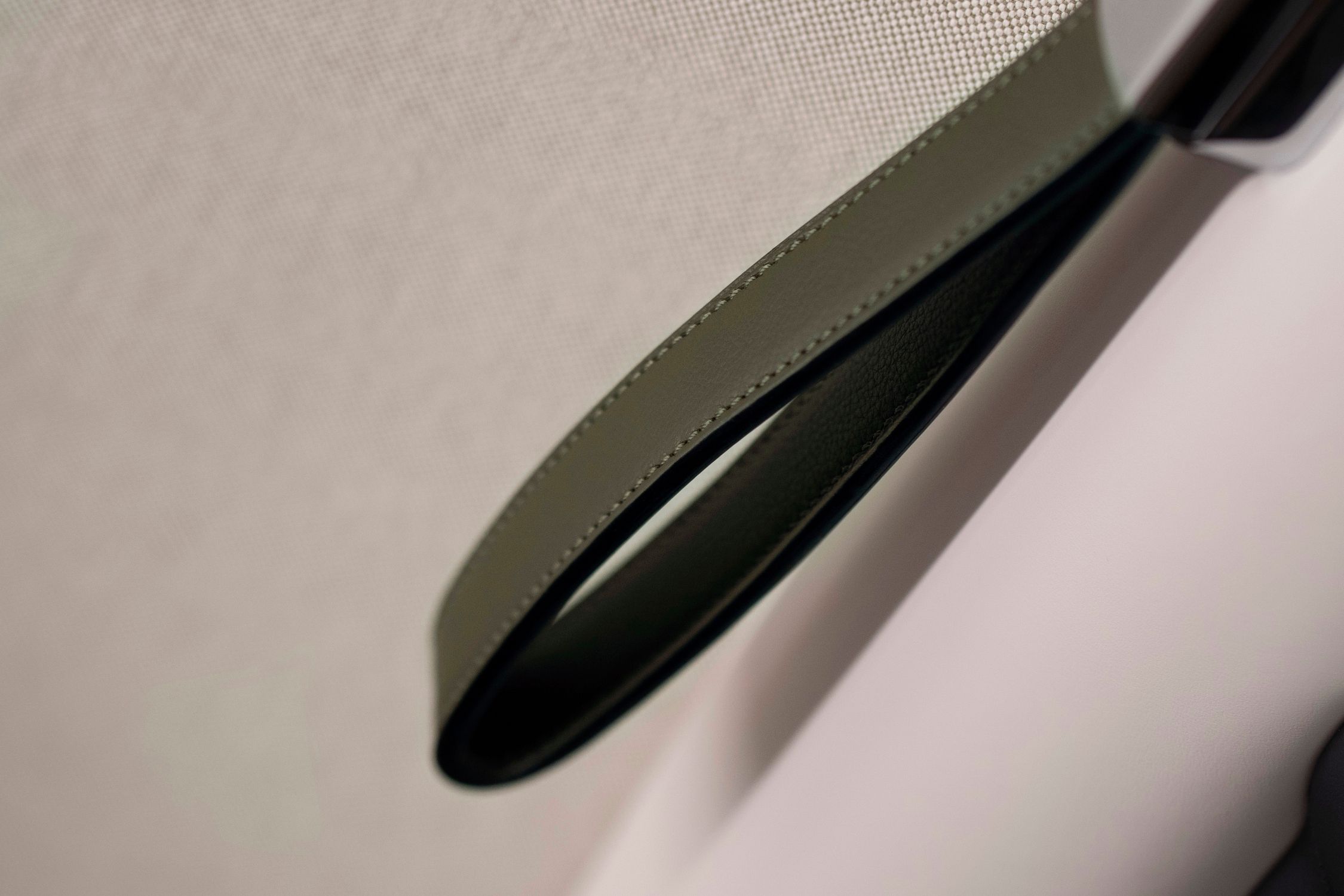 In a sign of the project’s truly collaborative nature, and the two makers’ mutual esteem, the glove compartment lid is embossed with the signature Habillé par Hermès Paris. Hermès piping also adorns the headrest cushions and calf supports of the rear seats, while soft Seashell White accents and matching lambswool floor mats create a sense of light and space throughout.