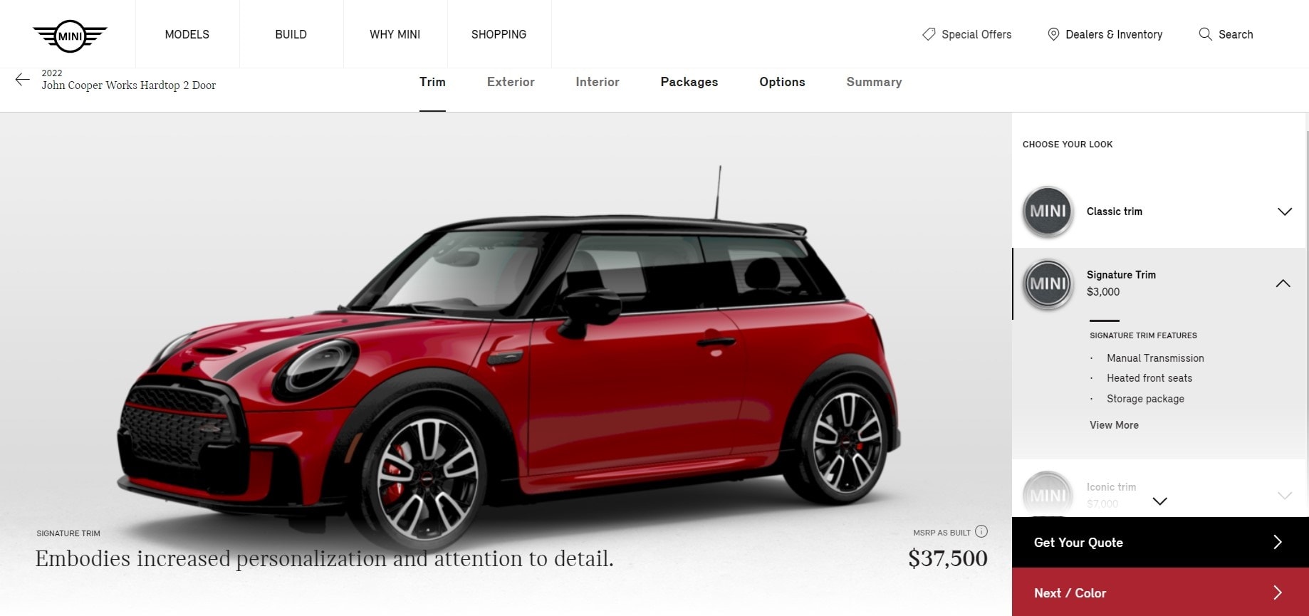 MINI USA also plans to make additional enhancements later this year. These enhancements include: a Micro-Configurator that allows customers to compare trim features and exterior color; A Dealer Inventory Matching enabling users to see vehicles in nearby dealer inventory that closely match the selections of their build in real-time as they customize through the BYO steps. In-Transit Inventory to provide the ability to show vehicles that have been produced, but are not yet on dealer lots and Build Recommendations that will recommend certain models and options based on geographic and demographic data.