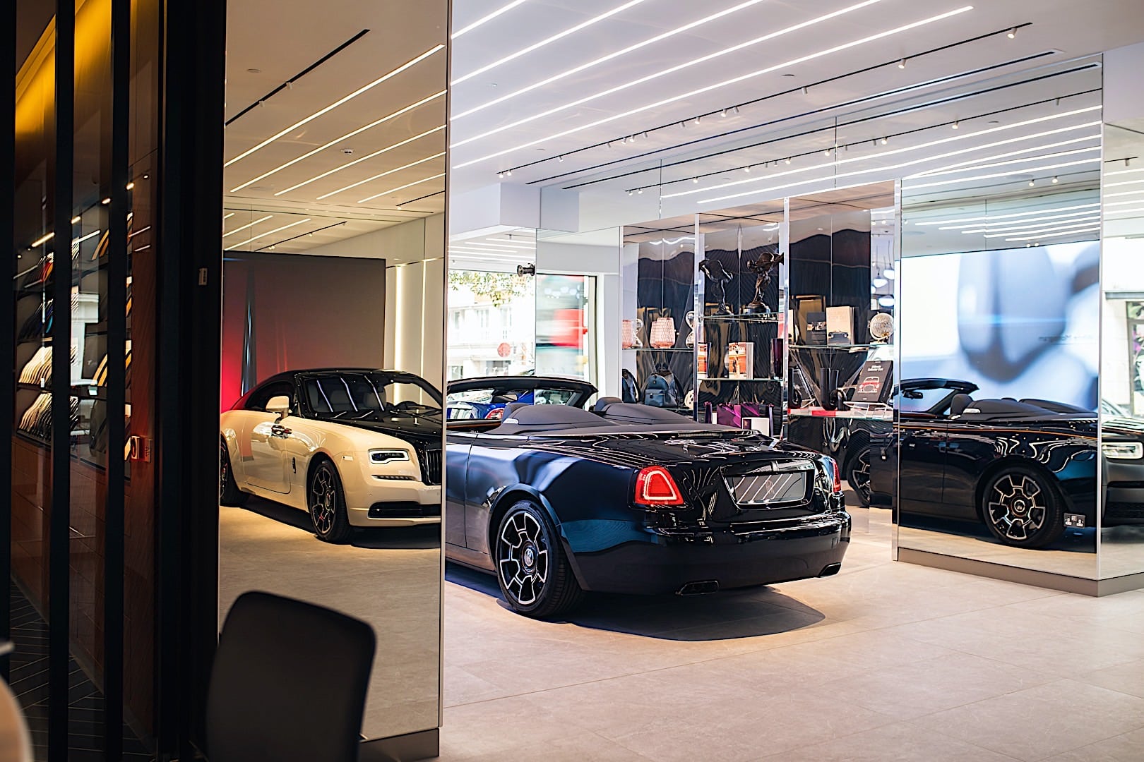 The interior concept is based on a luxury Galleria shopping experience. Each Rolls-Royce model has its own dedicated space, framed and presented according to its personality and identity. A lighting arrangement illuminates the area in which clients take delivery of their commission, using different sequences and orientations to create an engaging atmosphere, dependent on the product.