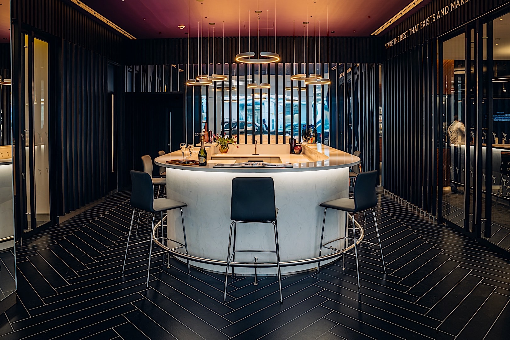 The lounge area features a ‘Cabinet of Curiosities’, displaying intriguing objects and pieces designed to spark ideas and conversations as part of the commissioning process. Discussions can also take place in the ‘Speakeasy’ bar to the rear of the store. Like its Prohibition-era namesake, this is a relaxed, comfortable and secluded space where clients can mix and socialize. More private still is the Brand Director’s office, which includes a cutting-edge configurator for finalizing specifications.
