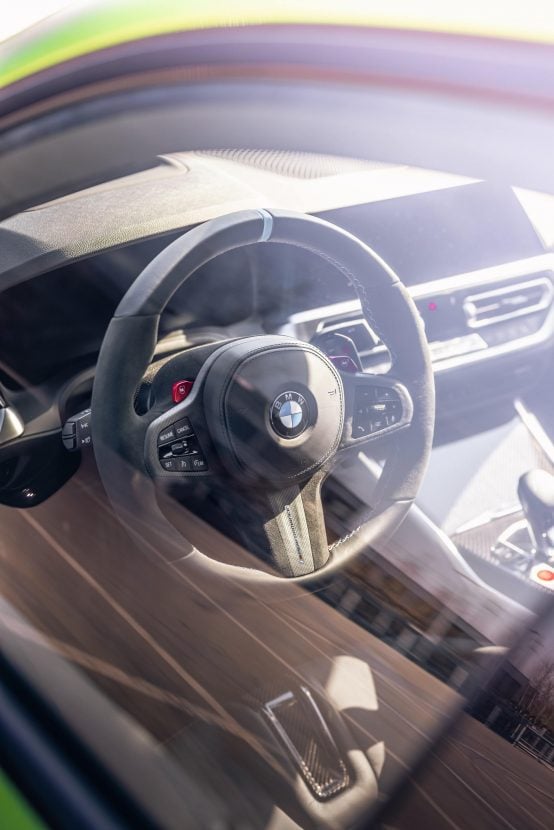 There is only one photo of the interior, but we already know what options you can order. For example, if money no object, you can go for the M Performance Pro steering wheel wrapped in Alcantara. In addition to the standard leather-covered steering wheel trim, the optional M Performance steering wheel trim Carbon/Alcantara and, optionally, the M Performance steering wheel Carbon/Leather each with M Performance lettering are available.