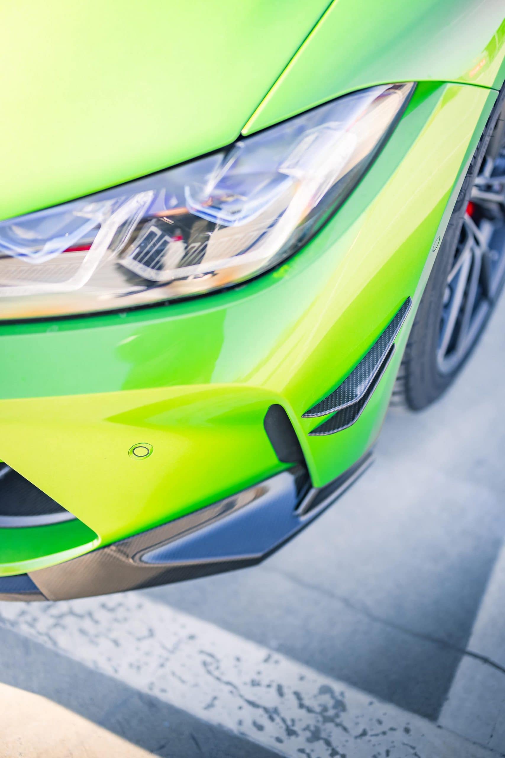 Next on the list of upgrades are a series of M Performance Parts. The list starts with a large fixed rear wing, new side skirts, a new lower front lip, a rear diffuser, and some canards on the front bumper. This G80 M3 in Java Green also wears BMW’s Style 963M wheels with a Gunmetal finish. Viewed from the side, you can also spot the M Performance carbon air breathers and M Performance carbon side skirt trims.