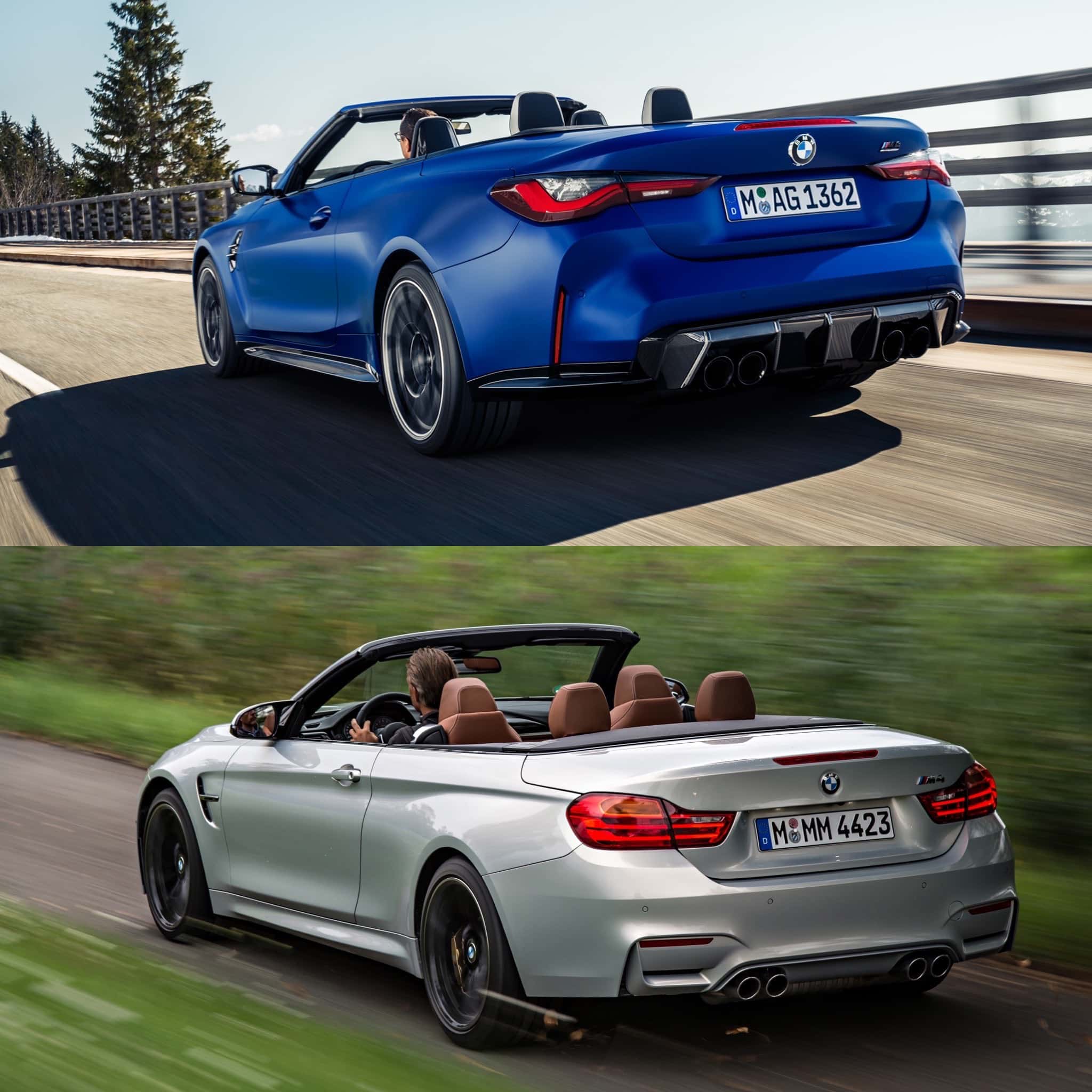 Up front, the old F83 M4 Convertible is the better car. The outgoing F80-chassis cars all sport better faces than the new G80-chassis cars. After driving the new M3, I’ve grown to forgive it for its mug and appreciate how it drives. That said, there’s no getting around the fact that its massive grille is just not good looking. The older car wins up front, no question.