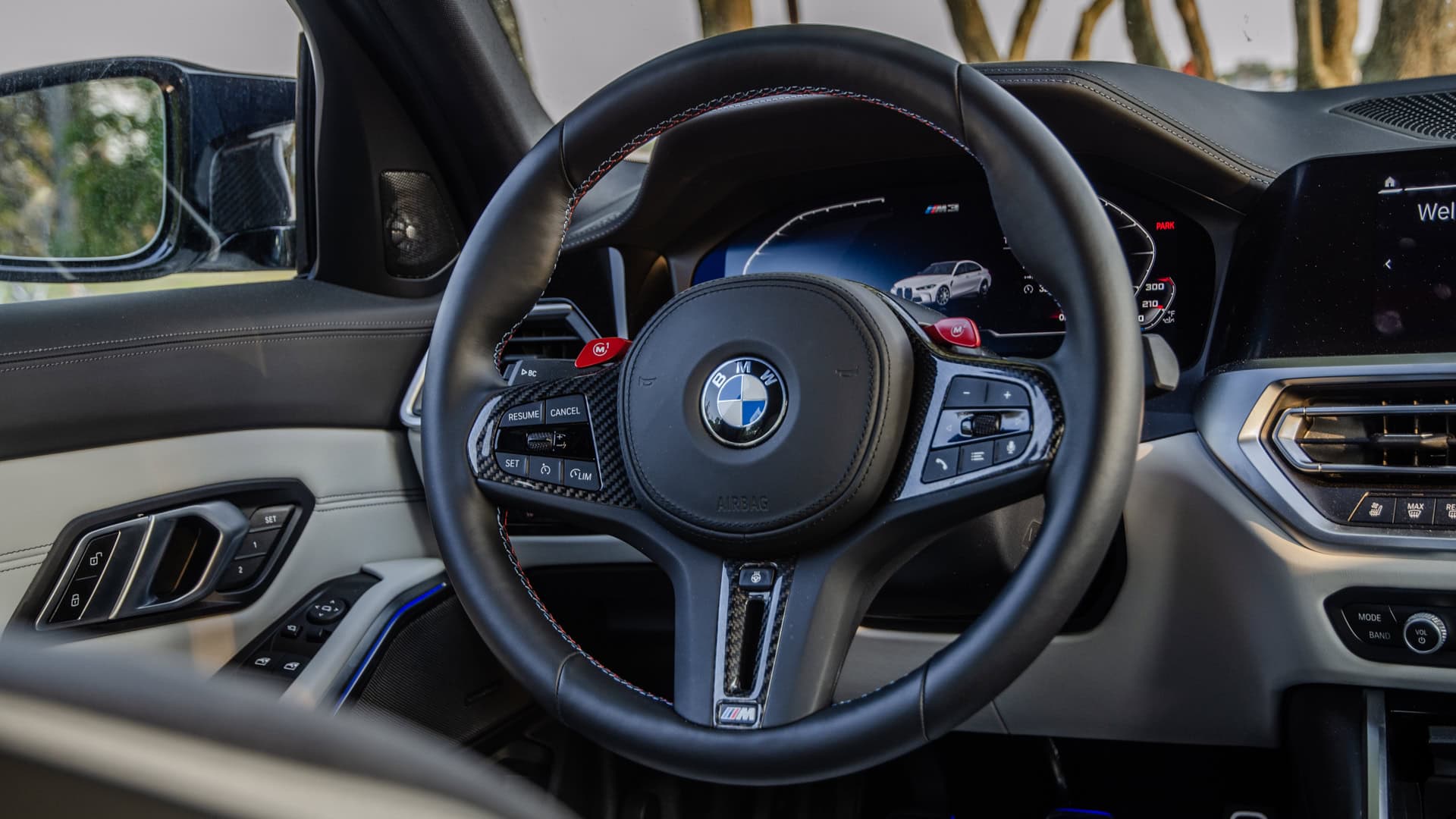 What makes the new M3 so good, though, isn’t its powertrain, it’s the chassis. BMW M has worked wonders with the G80; it feels precise, planted, and incredibly balanced. The front end bites shockingly well, almost refusing to understeer, and the rest of the chassis follows beautifully. The best part is that you don’t need to be hooning it to feel that sense of balance. I felt it after just a handful of turns into driving it. Where I pick up press cars from has a couple of nice turns, through its business park roads, and after snaking the M3 through them, I immediately said, outload, “this car is special.”