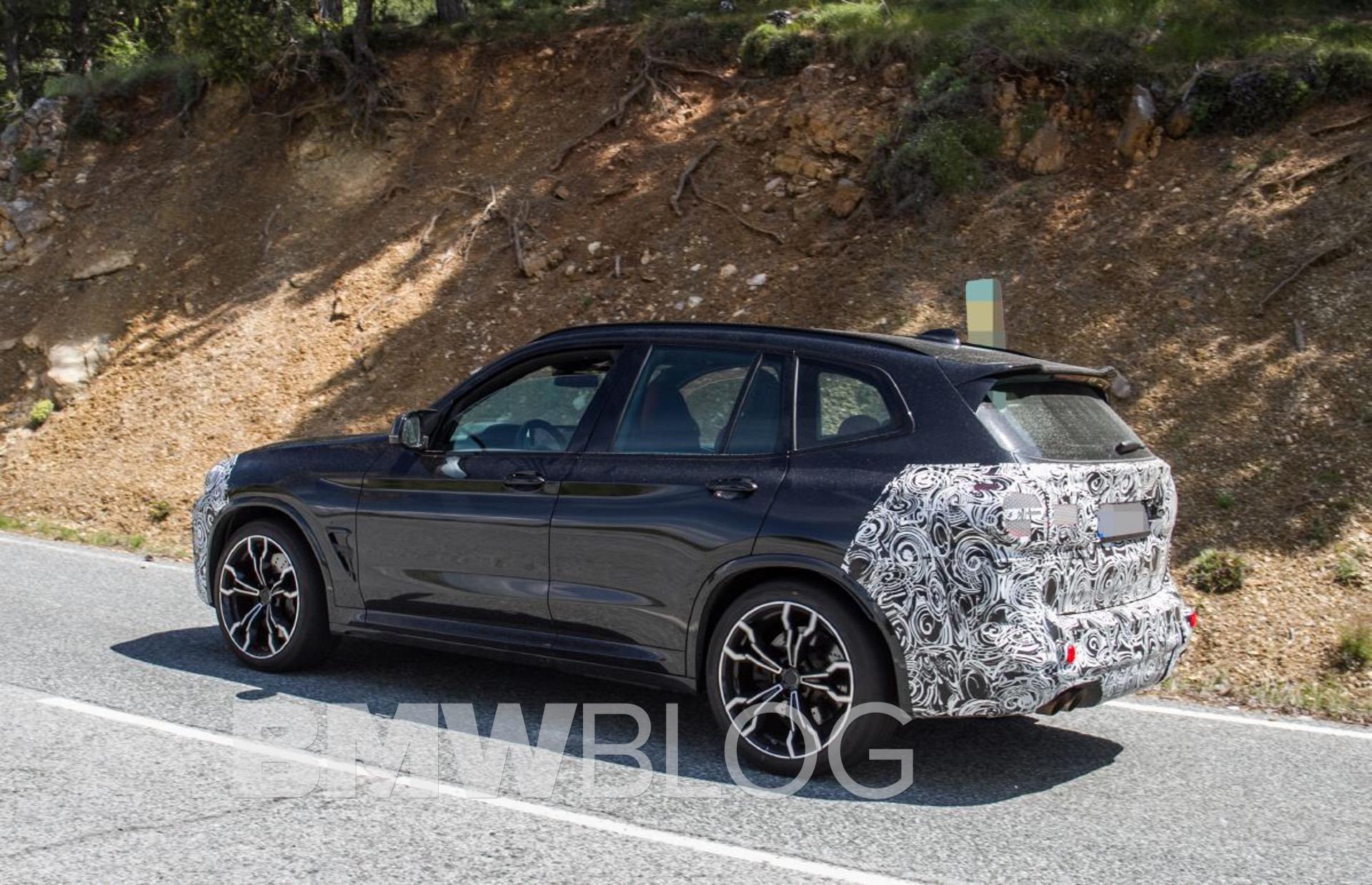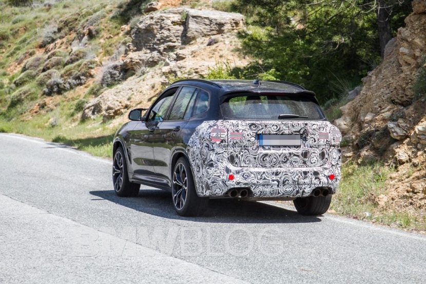 In these new photos, we see a black BMW X3 M wearing camouflage on its face and butt. Up front, its kidney grilles (thankfully) seem to stay the same. I remember first seeing the X3’s new kidney grilles and wondering how much bigger could they actually get. What a naïve little soul I was. Now, the X3 M’s grille looks tiny compared to the rest of BMW’s lineup and it’s better for it.
