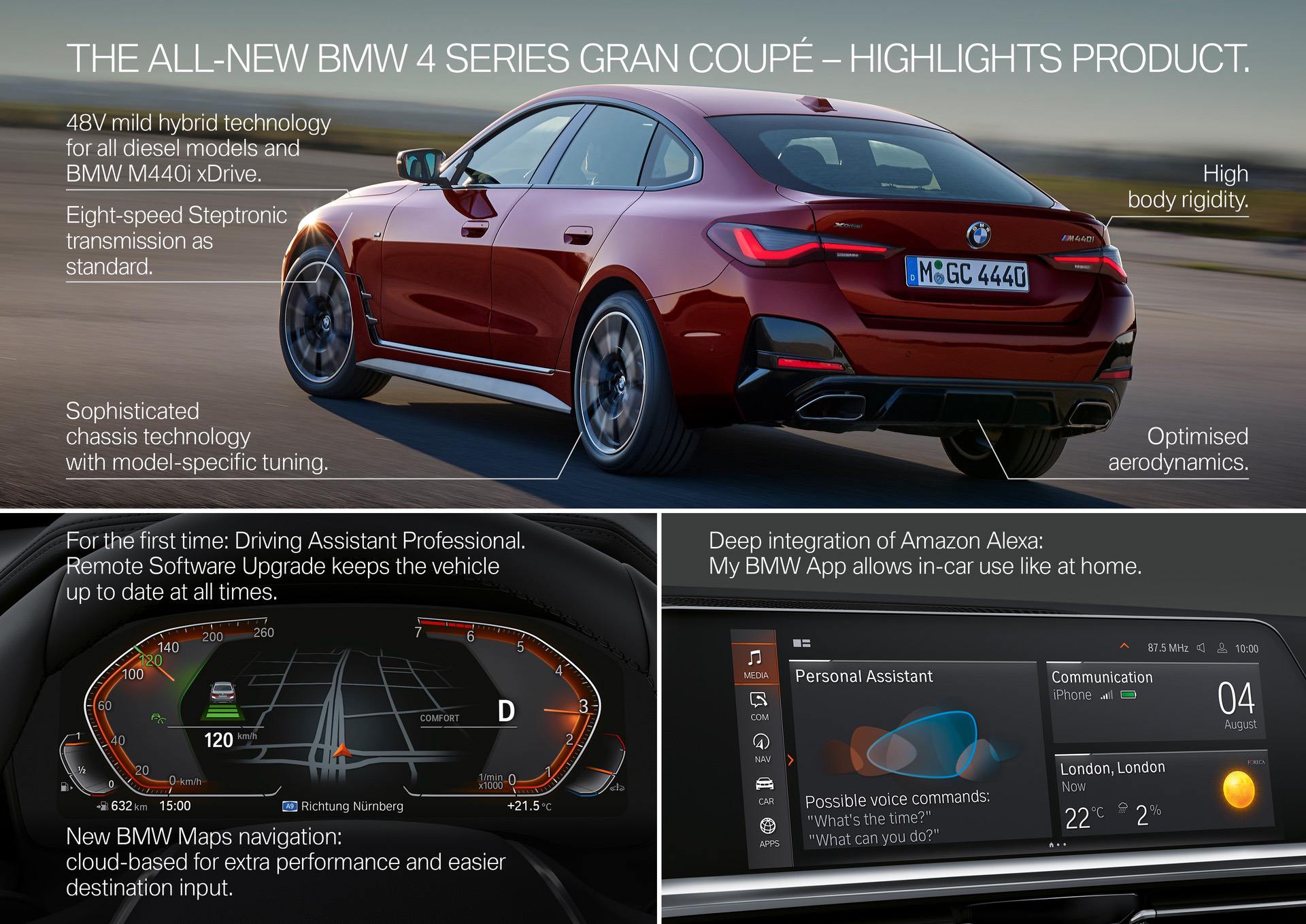 In addition to the luxury niceties, the 4 Series Gran Coupe will get all of BMW’s typical fancy technologies. For instance, it will come available with BMW’s 3D View parking cameras, Parking Assistant, Reverse Assistant, and the Personal Driving Assistant Professional, the latter of which is BMW’s Level 2 autonomous driver aid. Though, the 4 Series Gran Coupe isn’t as high-tech as its i4 sibling, as the former will only get BMW’s iDrive 7, while the later gets the new iDrive 8.