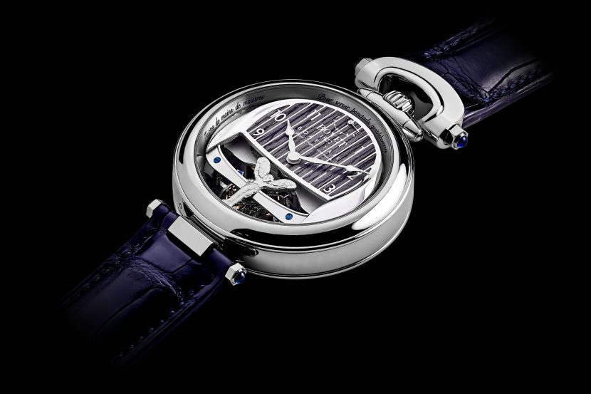 In watchmaking, weight is rarely an issue for a complex timepiece, but in this instance, there was a limit on the combined permissible weight of the timepieces and their holders. BOVET 1822 met this requirement by creating an entirely new 44mm white gold case. In addition, the timepieces and holders also had to be tested to automotive-industry standards for vibration and crash safety – something never previously undertaken on mechanisms of this kind.