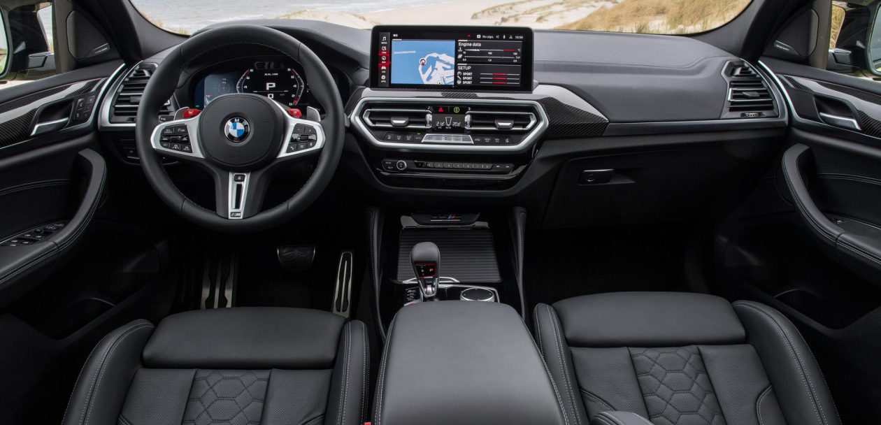 Inside, most of the BMW X4 M’s original interior design remains intact but it now gets the new iDrive 7 screen, along with the brand’s digital gauges. Both of which simple modernize the cabin a bit, keeping it more in line with more recent offerings. The climate controls are also from BMW’s more modern cars, which does keep it looking more uniform with the brand. Extended Merino leather upholstery is available in black as well as in the Bicolor variants Sakhir Orange/Black, Adelaide Grey/Sakhir Orange and Midrand Beige/Black. The BMW Individual Merino leather upholstery in Tartufo is also available as an option for the M sports seats.