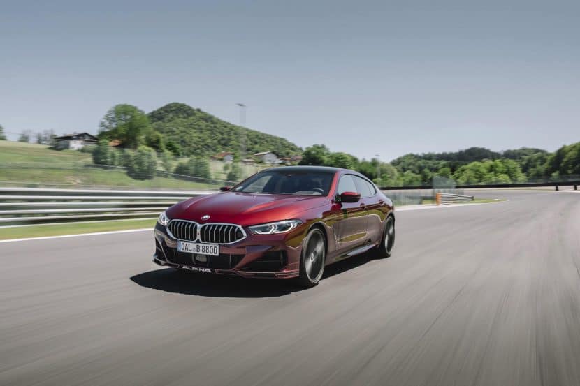 Obviously, the ALPINA B8 Gran Coupe starts life as a BMW M850i Gran Coupe but after the team at ALPINA is done with it, the B8 is a more refined machine. For starters, the BMW 4.4 liter twin-turbocharged V8 is taken out, torn down, and fitted with a ton of new kit. The usual ALPINA engine treatment involves replacing the pistons, intercooler, intake manifold, exhaust manifold, fitting larger twin-scroll turbochargers, and giving it its own bespoke tune.