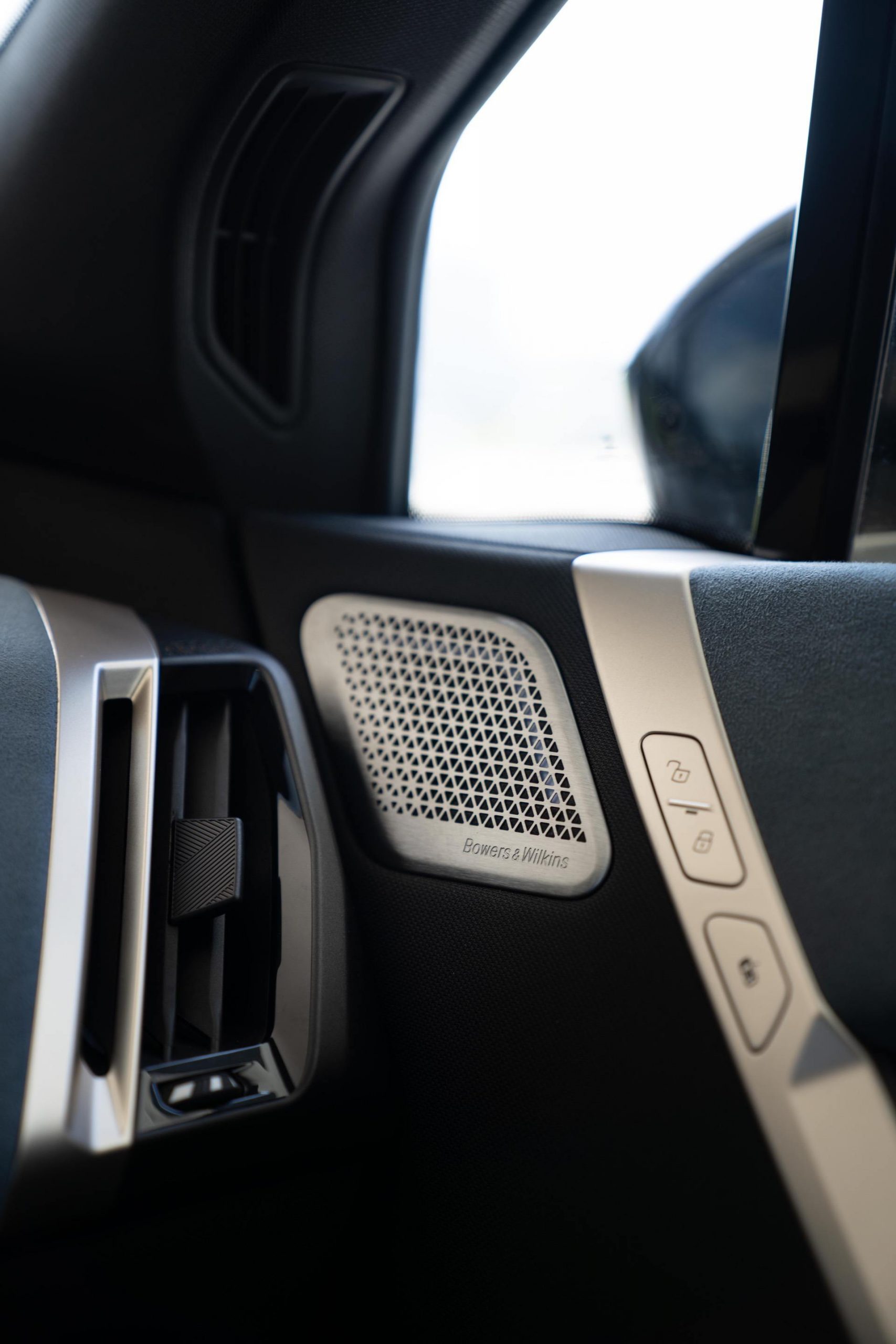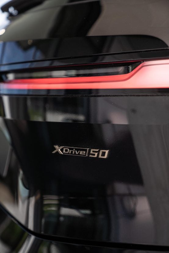 Another interesting upgrade on this iX is the BMW Individual Exterior Line titanium bronze which provides an elegant contrast to the black paintwork. The pattern of the BMW kidney grille, which is packed with sensors, and the xDrive50 model logo on the rear are made of titanium bronze as well.