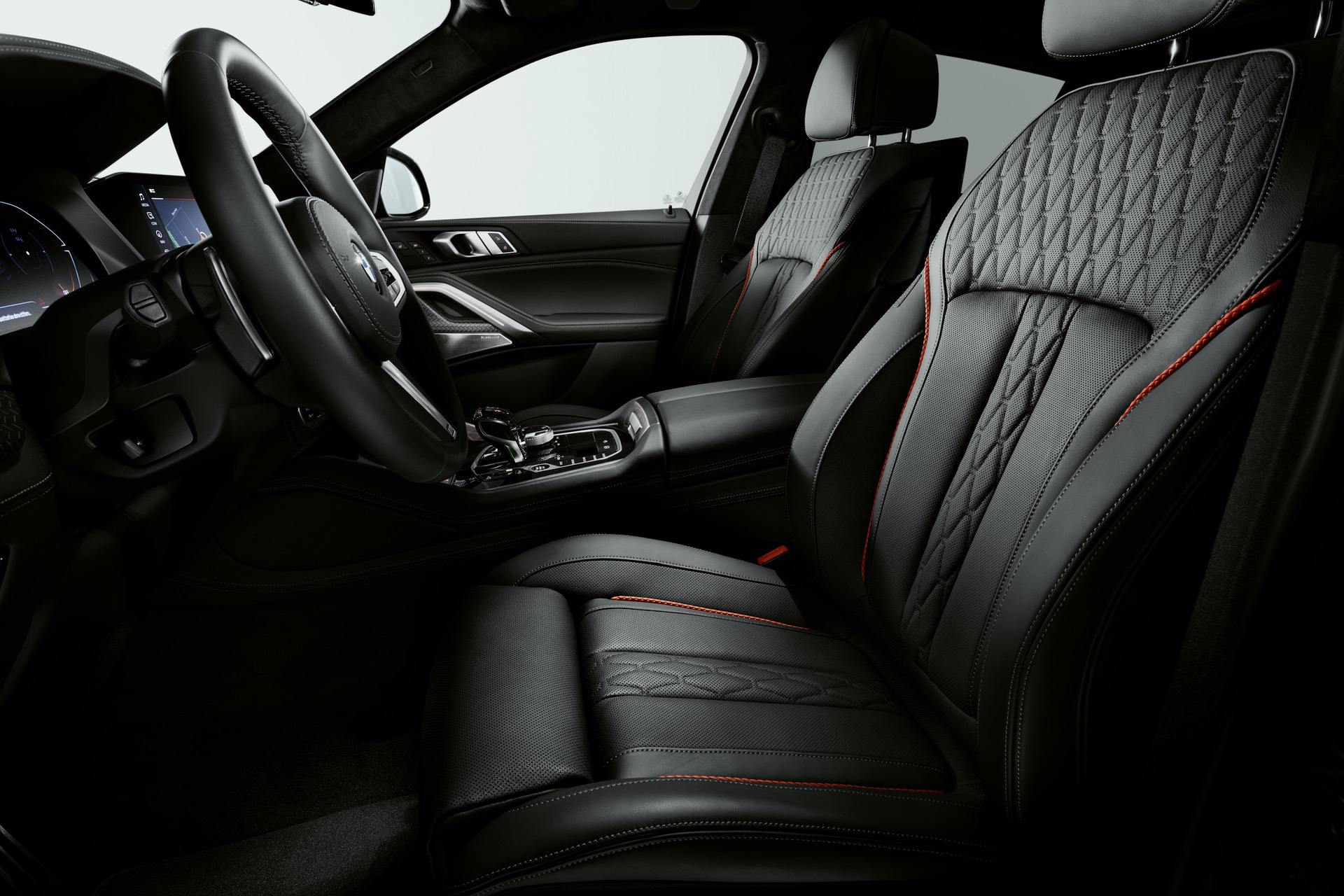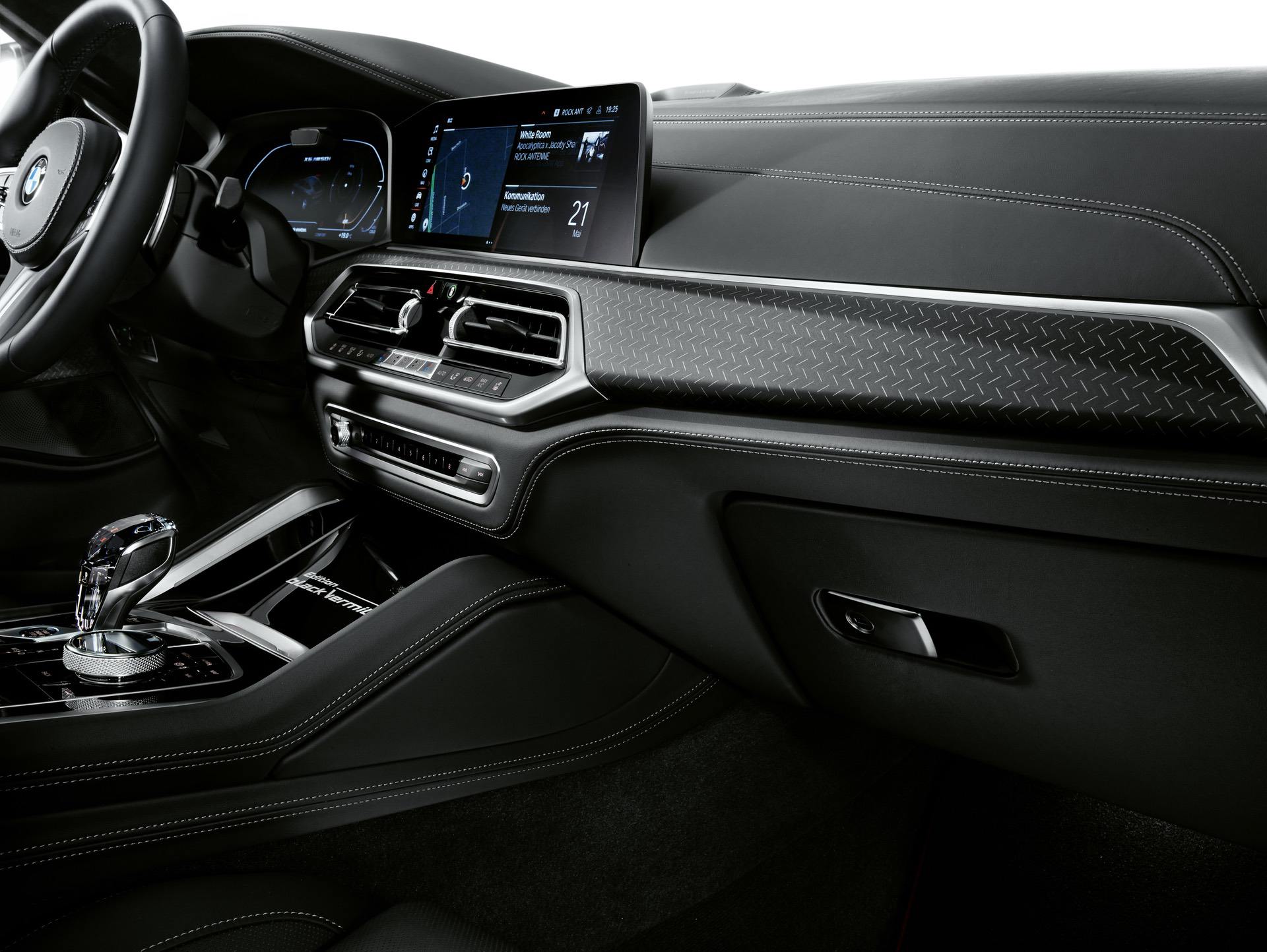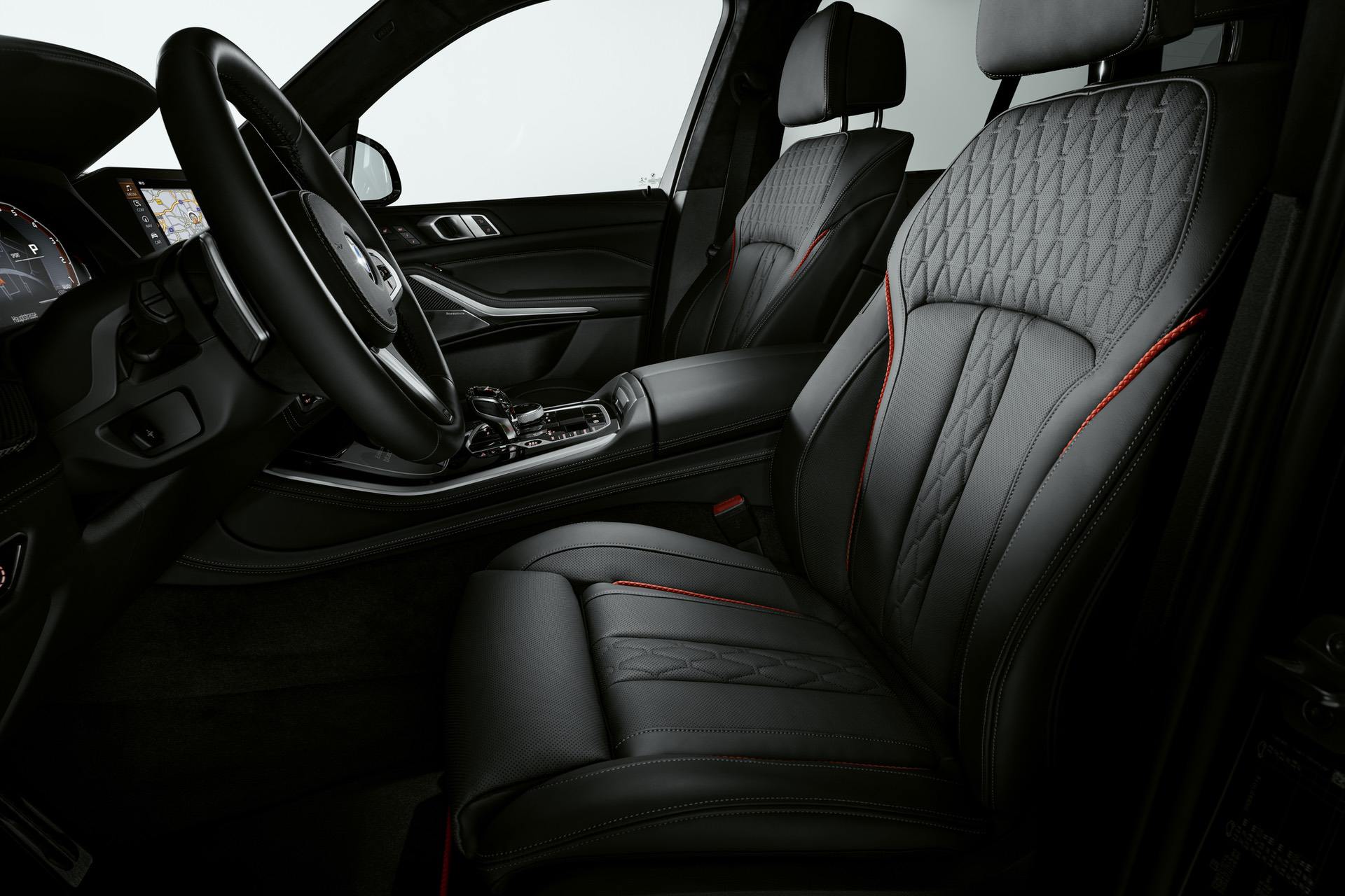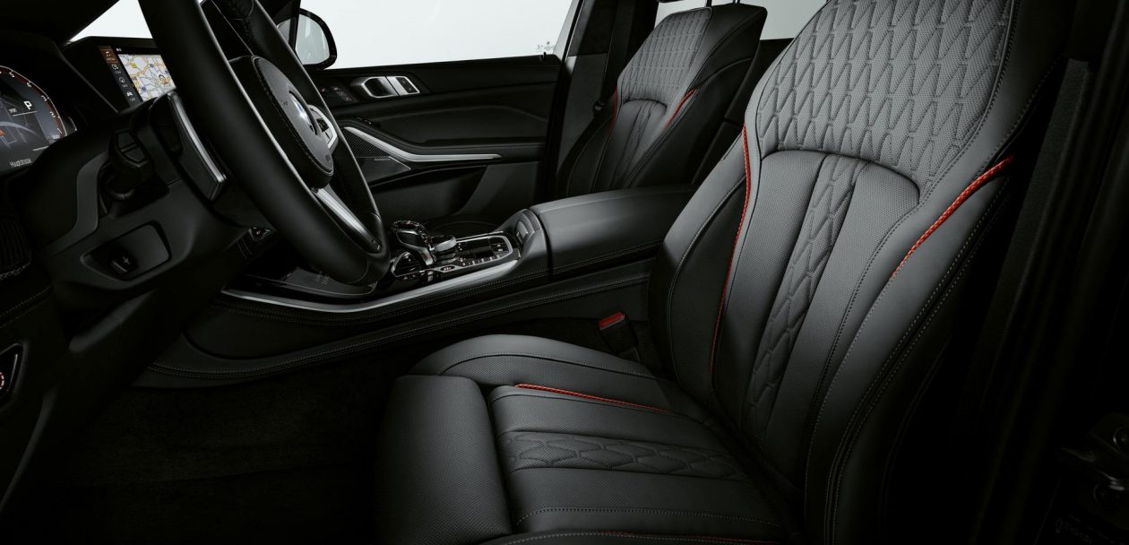 The black/red theme continues with the BMW Individual full leather trim Merino Black which is enhanced by edition-specific red contrast stitching for both the driver’s seat and front passenger seat. Inside the BMW X5 Black Vermilion, the red accents are also to be found on the rear seats. Likewise, the edging on both the front and rear floor mats is finished in red.