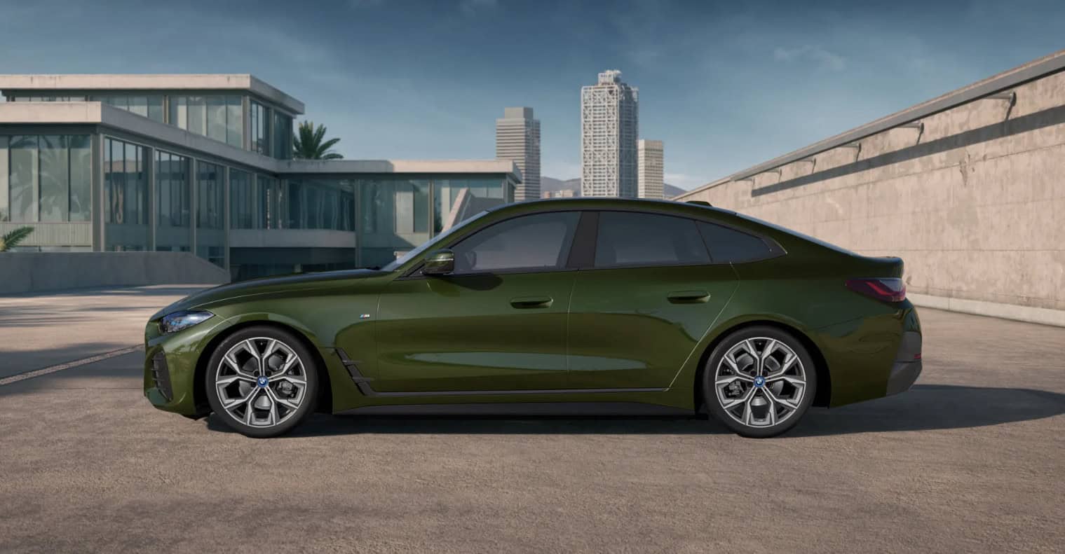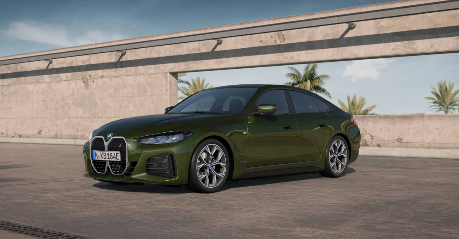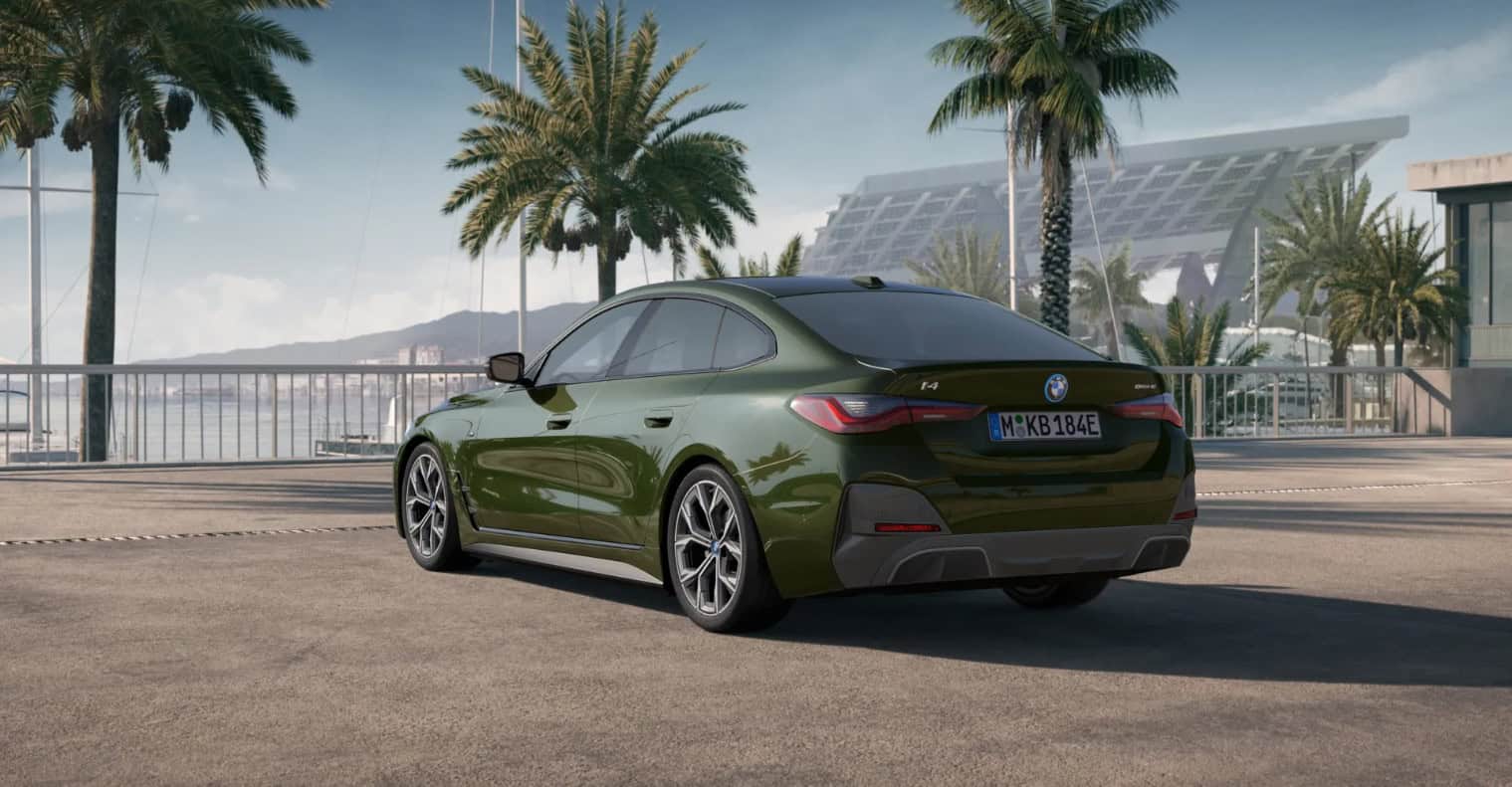 BMW i4 eDrive40: M Sport line, San Remo Green Metallic, Vernasca Oyster interior