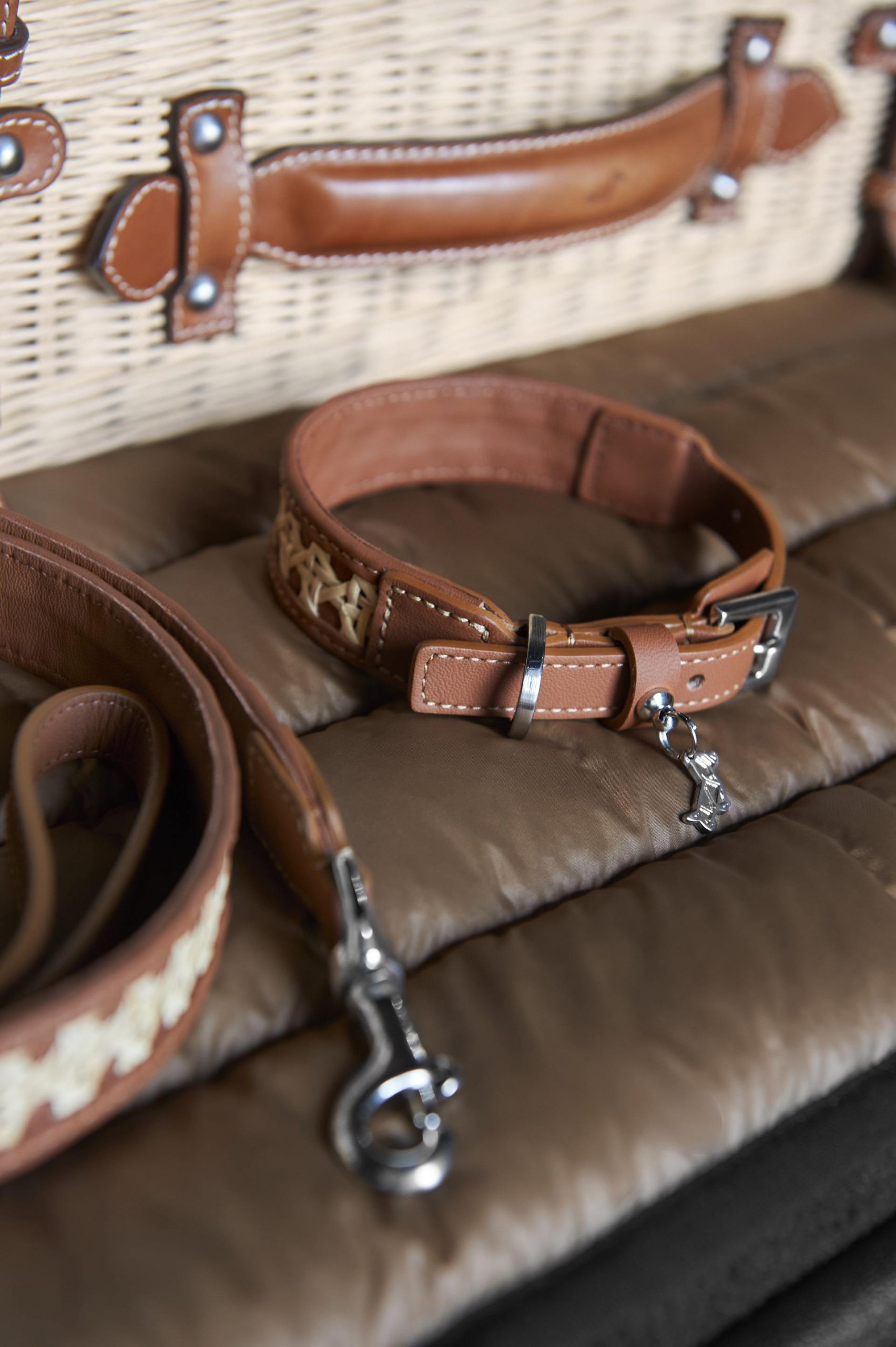 - A 40 cm seat belt in leather and Vienna straw to secure the dog to the seat when traveling in the rear seats