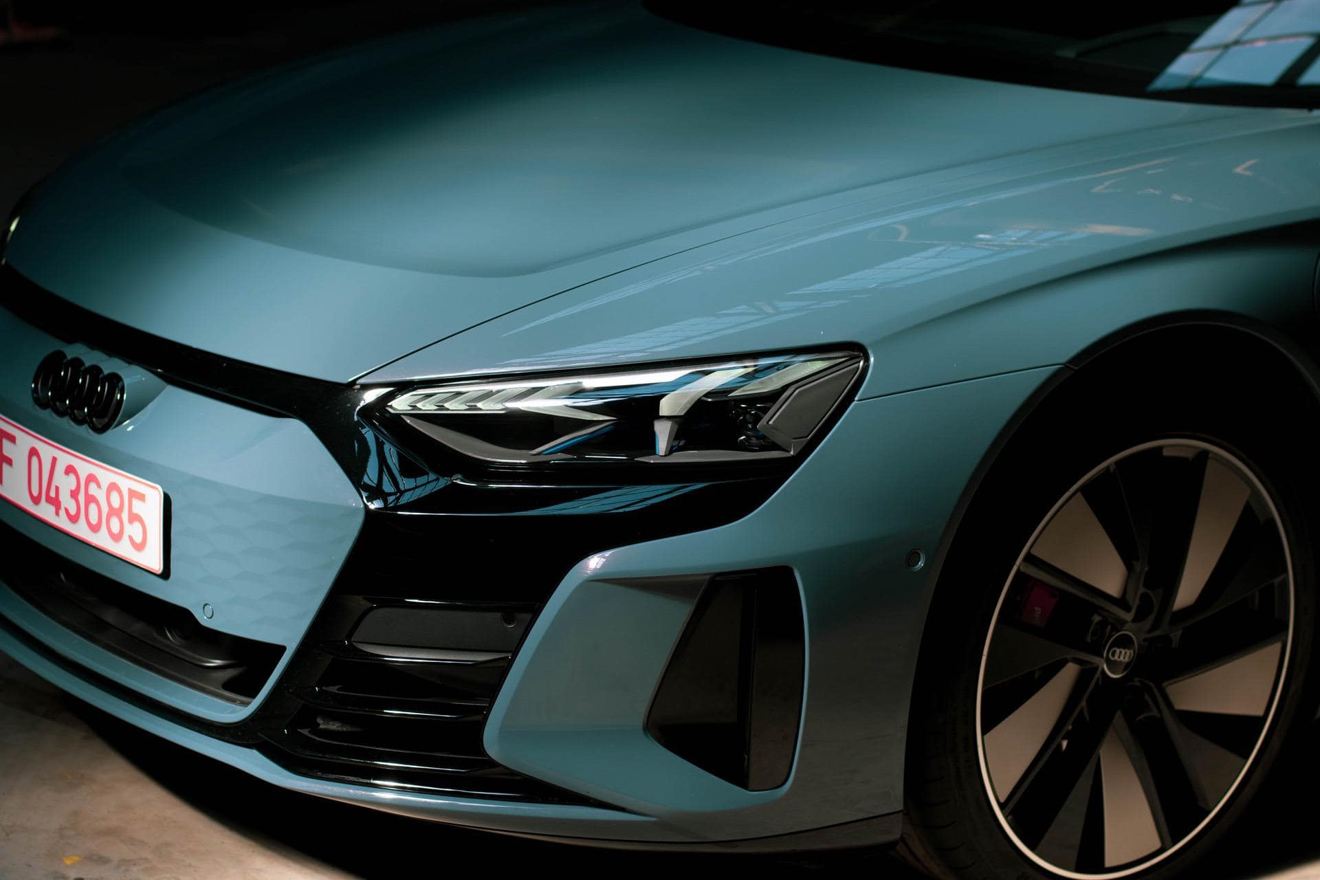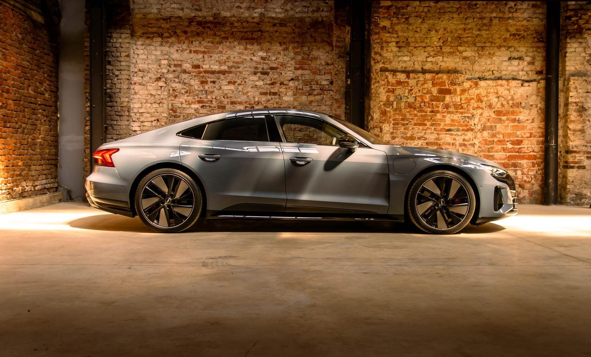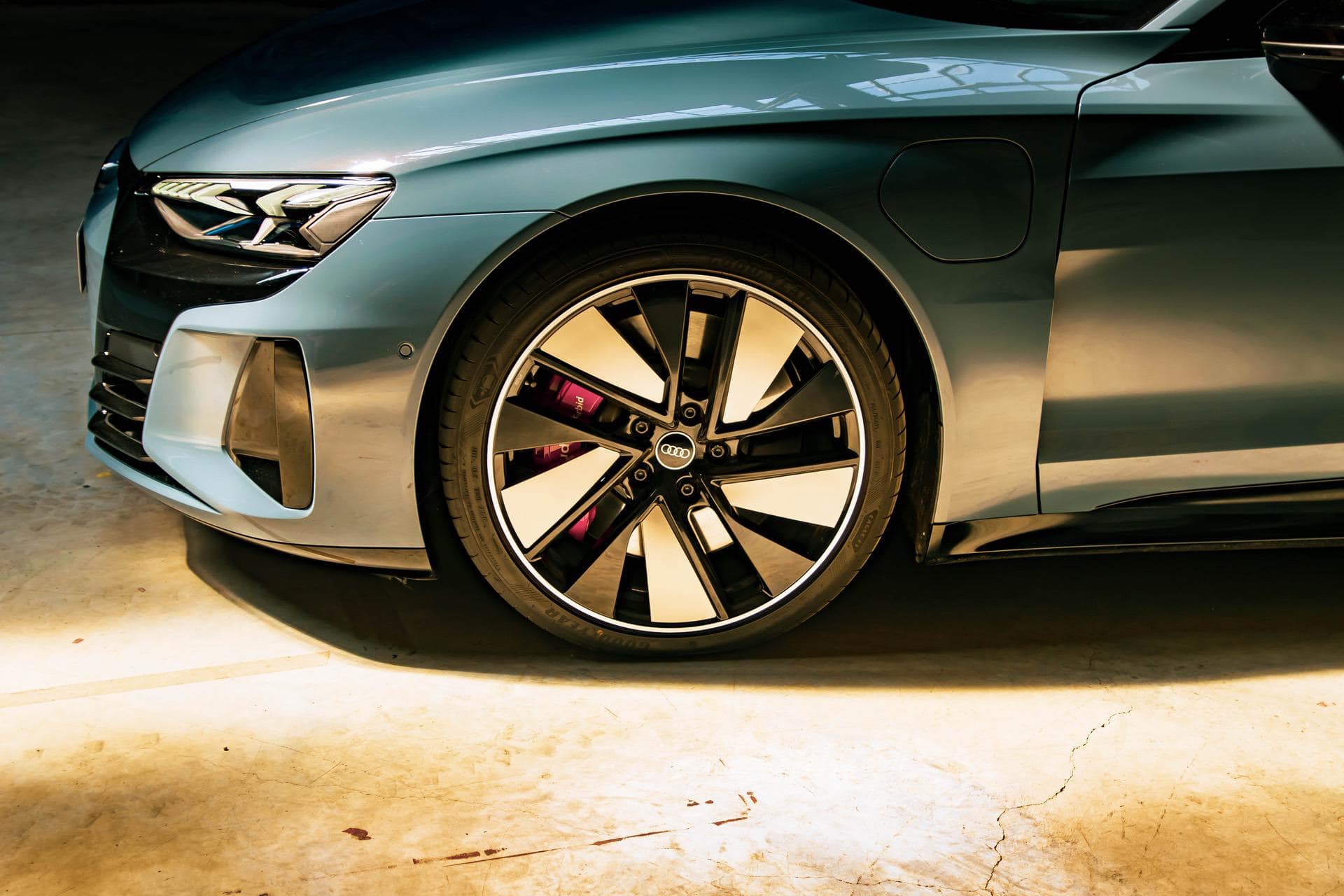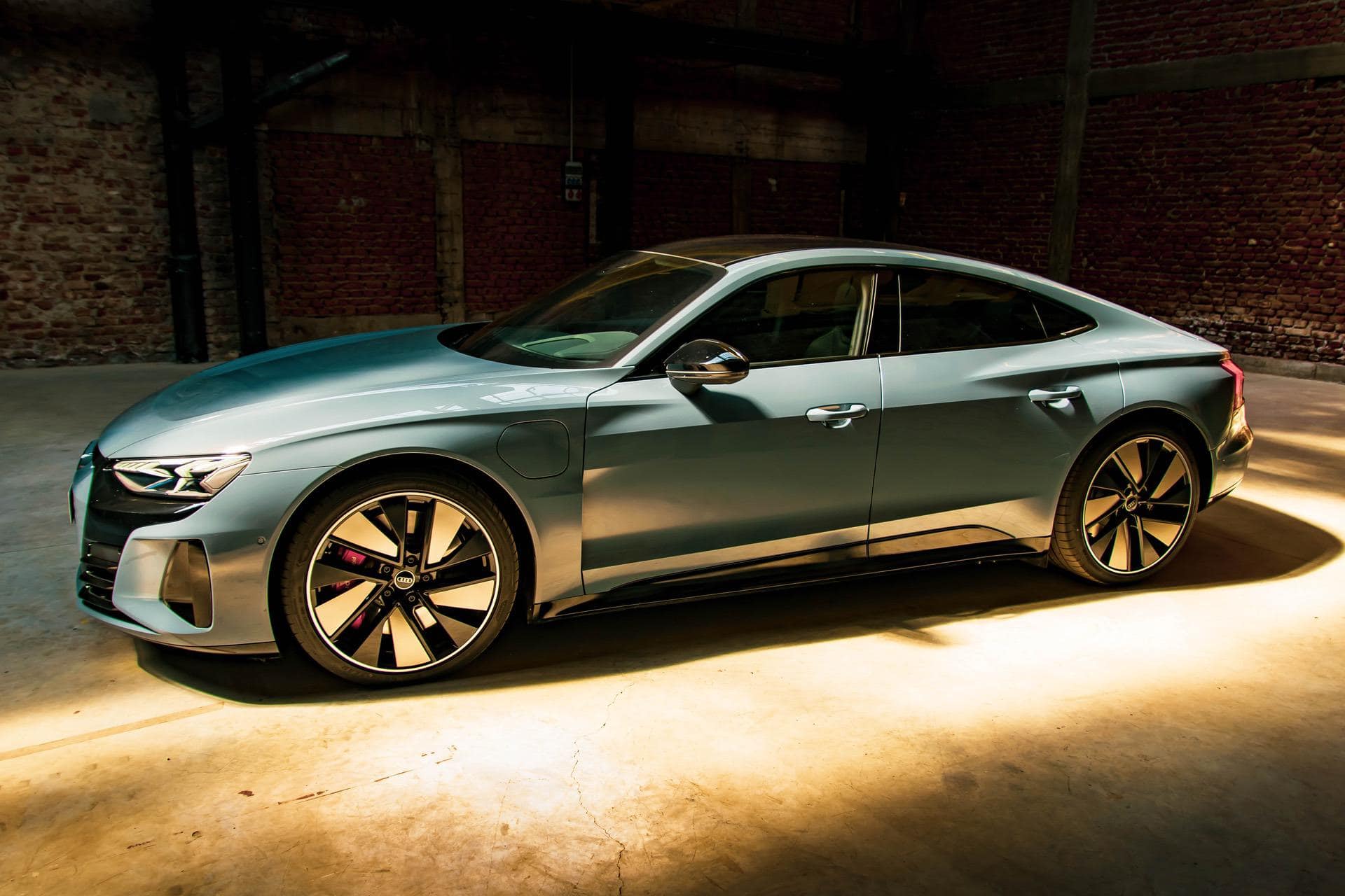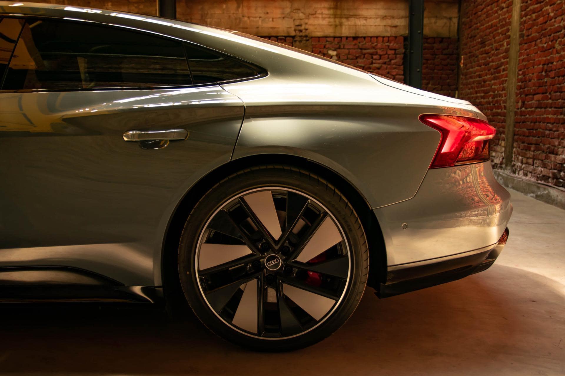 As for the sides, the sleek, long e-tron GT is almost five meters long with and 21” optional RS wheels, which have aerodynamic panels on them added on, to make sure you can squeeze everything you can out of the battery sitting in the floor.