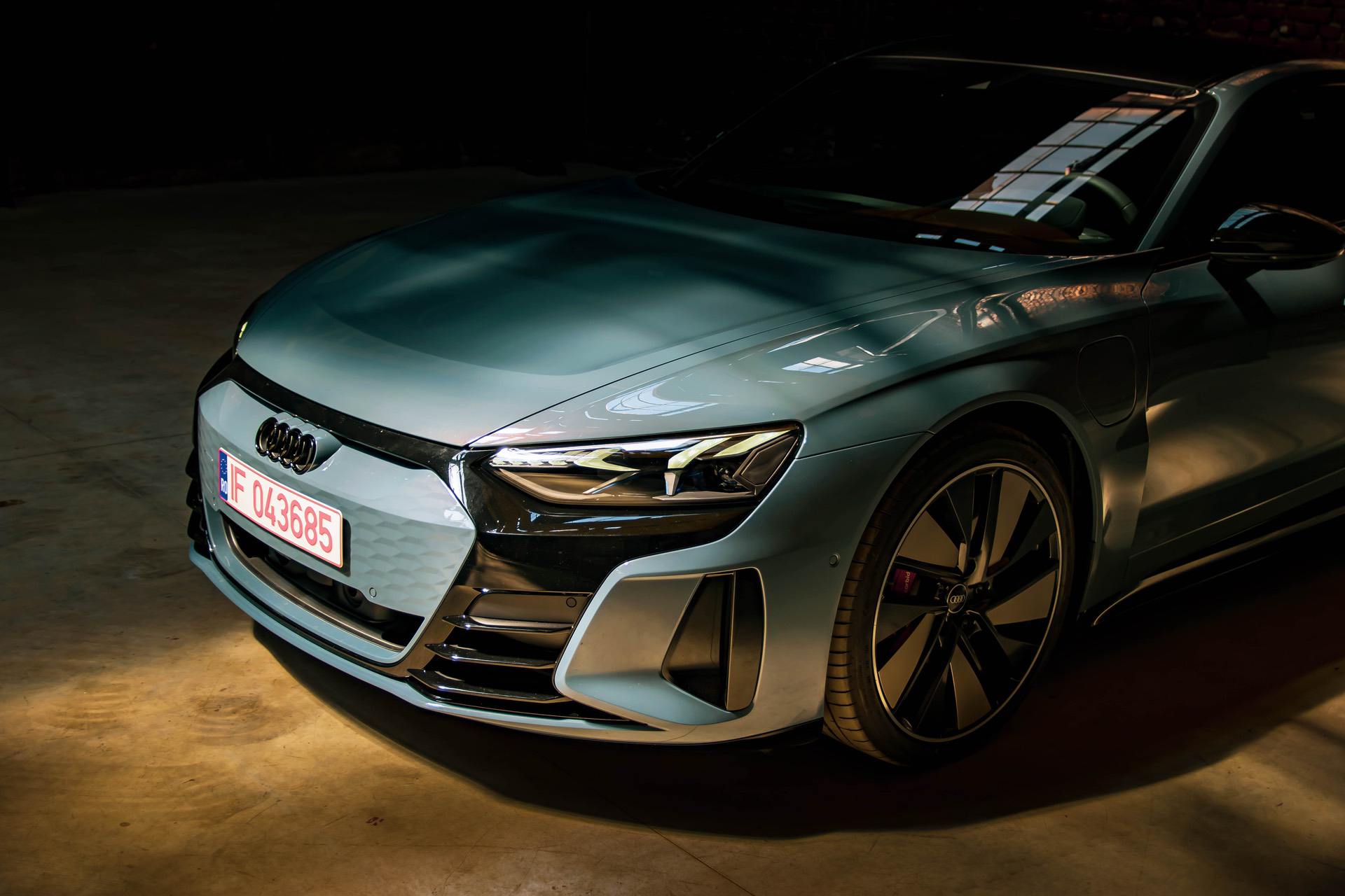 As two black veils are pulled back, we’re told “It’s a game changer” and the latest electric models from Audi make their way forward. I’m looking at the Audi e-tron GT, the fastest and — in RS guise — the most powerful car they ever put in production. And yet, the atmosphere is quiet, too quiet for cars that are supposed to get your heartbeat racing the moment you step on the “gas”.