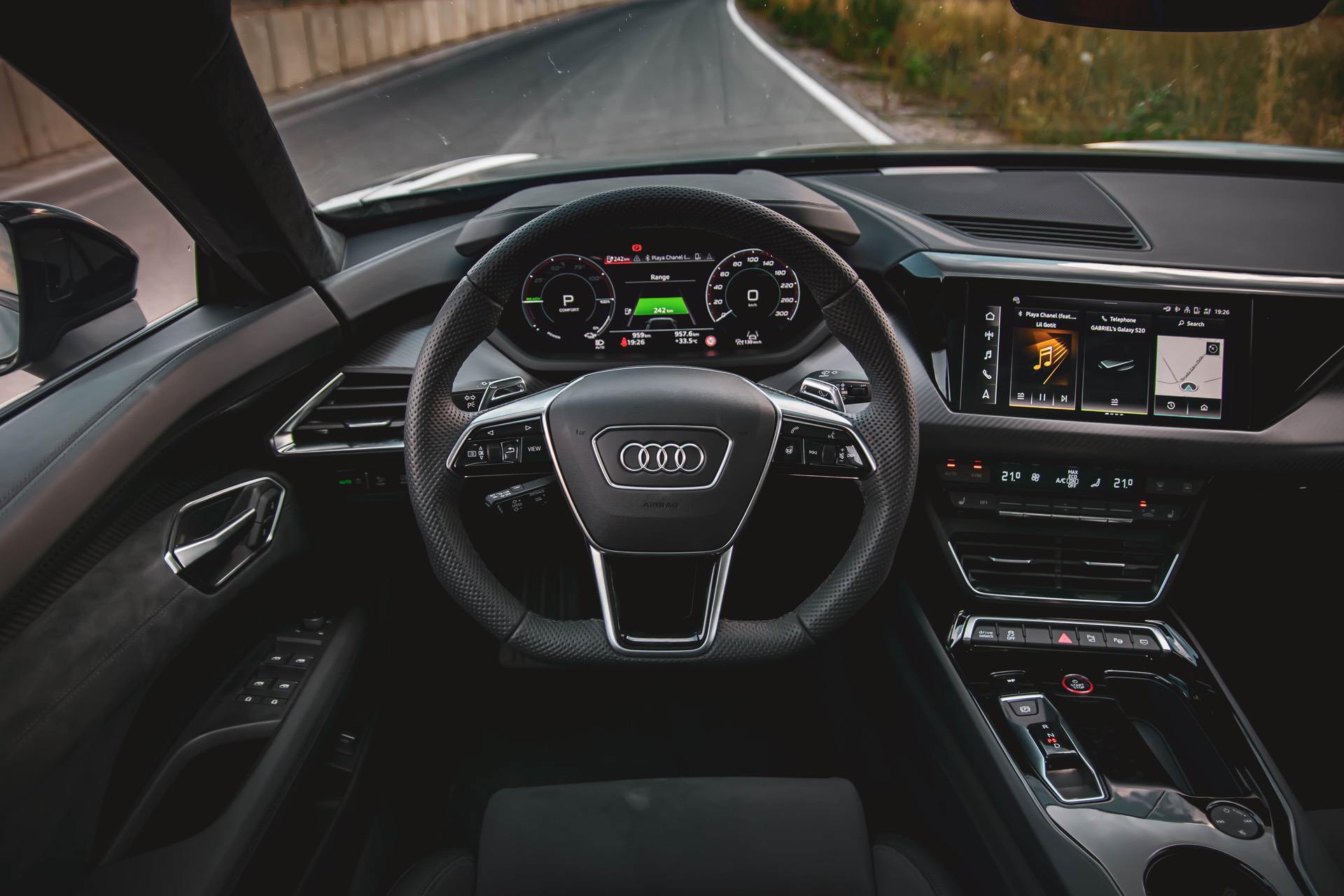 With such speeds you’ll immediately leave the city and head out into the ‘wild’ and that’s where you can actually enjoy the car’s specs. Outside the confines of a big, crowded urban area, the e-tron GT can unwind and, if you take it to a couple of canyon roads, you can feel it work under the sheet metal.