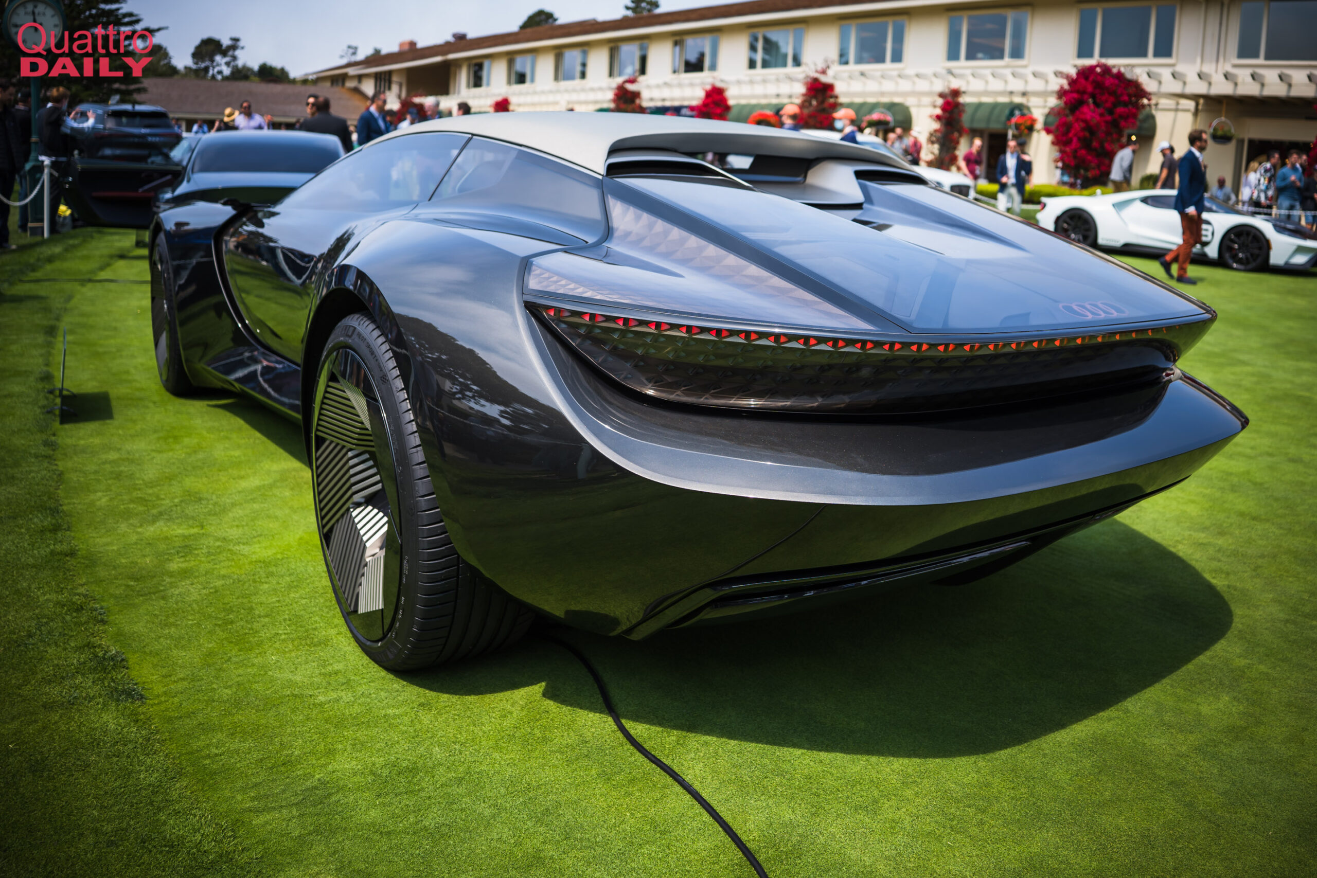 BMW didn’t have a concept car at Pebble this year but its Bavarian neighbor and rival Audi did. The Audi Sky Sphere was quite possibly the most at-home concept car at Pebble Beach, with its futuristic Art Deco design. It looks like something that Jay Gatsby would drive had the book been based in the 2050s. It also features a variable wheelbase, which extends forward for autonomous grand touring but also shortens by 250 mm for sportier driving.