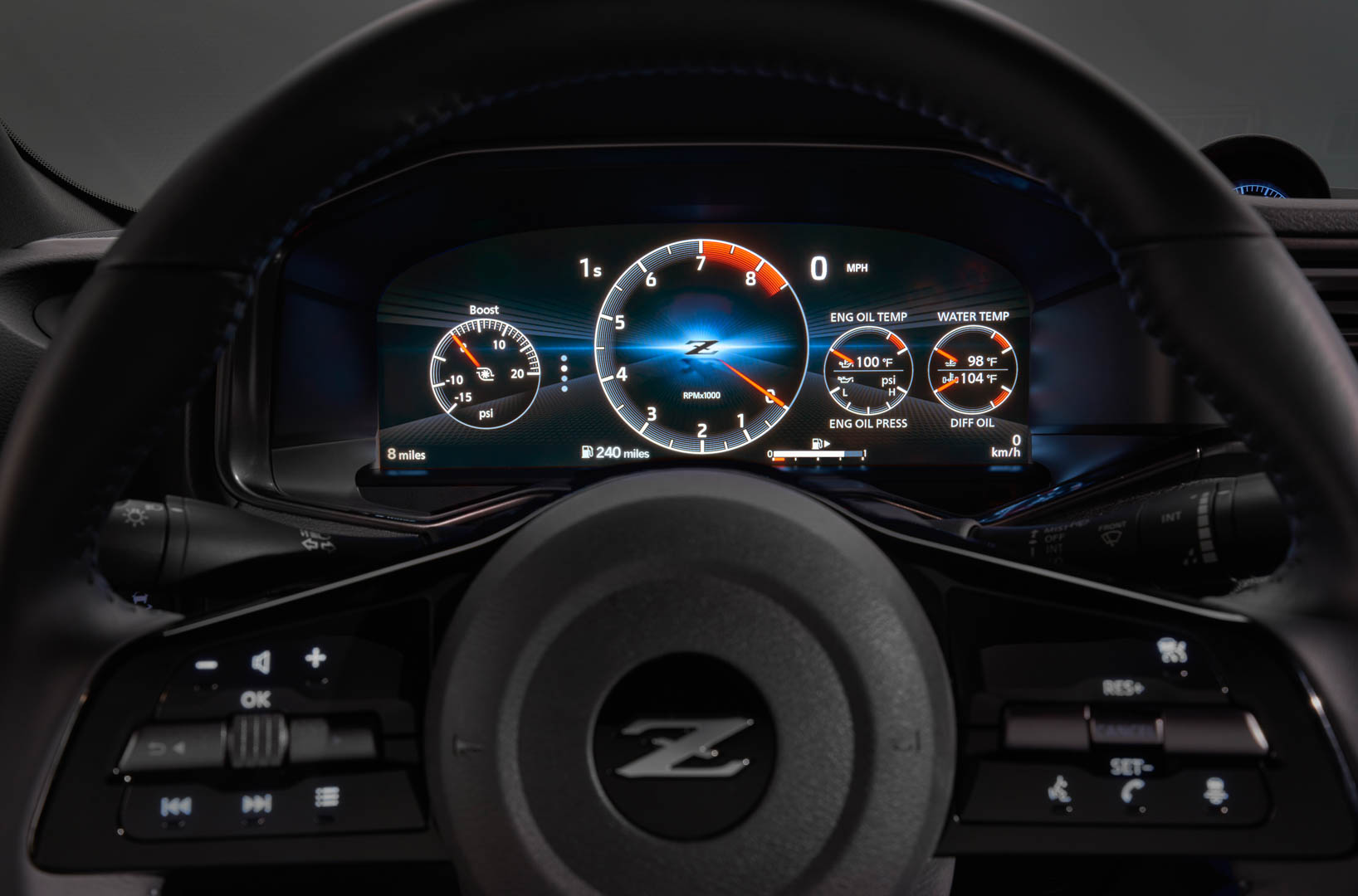 What’s under the hood is new, though. It’s a 3.0 liter twin-turbocharged V6, the same VR30DDTT engine from the Infiniti Red Sport 400, which makes 400 horsepower and 350 lb-ft of torque. Two transmission options will be available; a nine-speed automatic and a six-speed manual. Interestingly, it’s the latter of which that gets the sportier tech. The manual gets a high-performance EXEDY clutch and even a carbon fiber driveshaft. Snazzy stuff. There’s going to be a Z Performance model that comes with 19″ lightweight forged Rays wheels and Bridgestone Potenza S007 tires.