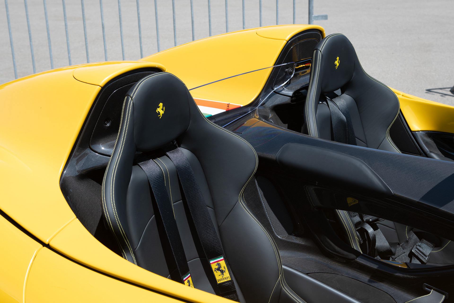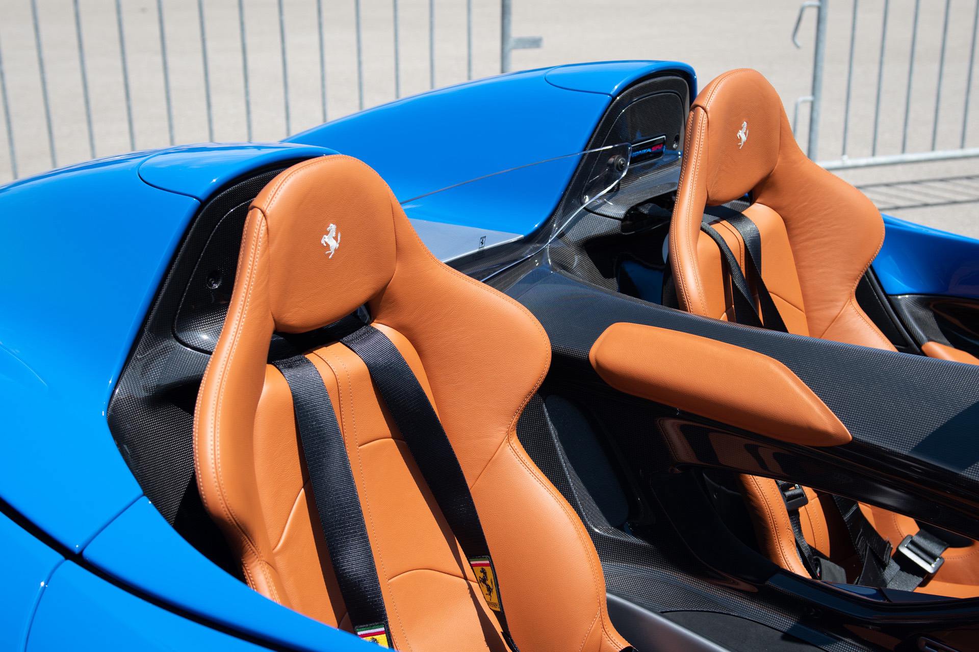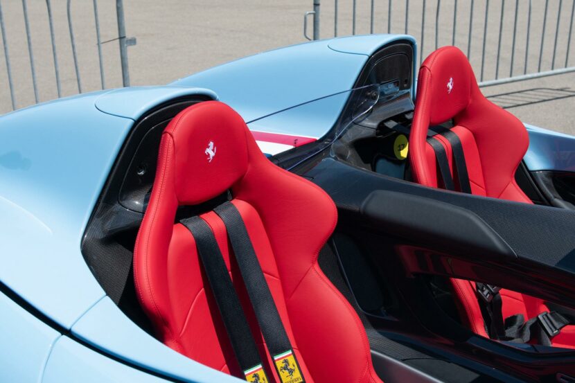 The coachbuilt body work is entirely carbon fiber and absolutely gorgeous. Although, you’d expect a fully carbon-bodied car to be light but the Monza isn’t exactly light. With fluids and a driver, it’s around 1,700 kg (around 3,750 lbs), which isn’t much lighter than a BMW M5 CS. However, the Ferrari Monza has more than enough firepower to compensate.