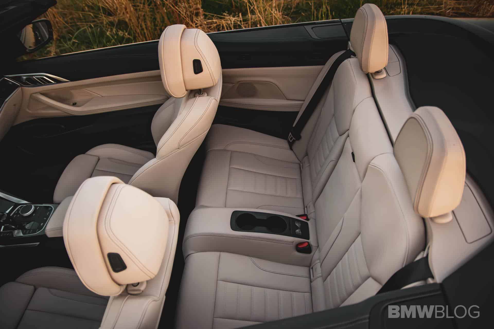 Theoretically, the 4 Series convertible is a four-seater but the rear seats would only work for… smaller humans. Their seatbacks are also a bit more upright, making longer journeys a bit tedious. Furthermore, the same old wind deflector solution was deployed by BMW for the new 4 Series drop top and that’s a bit disappointing.