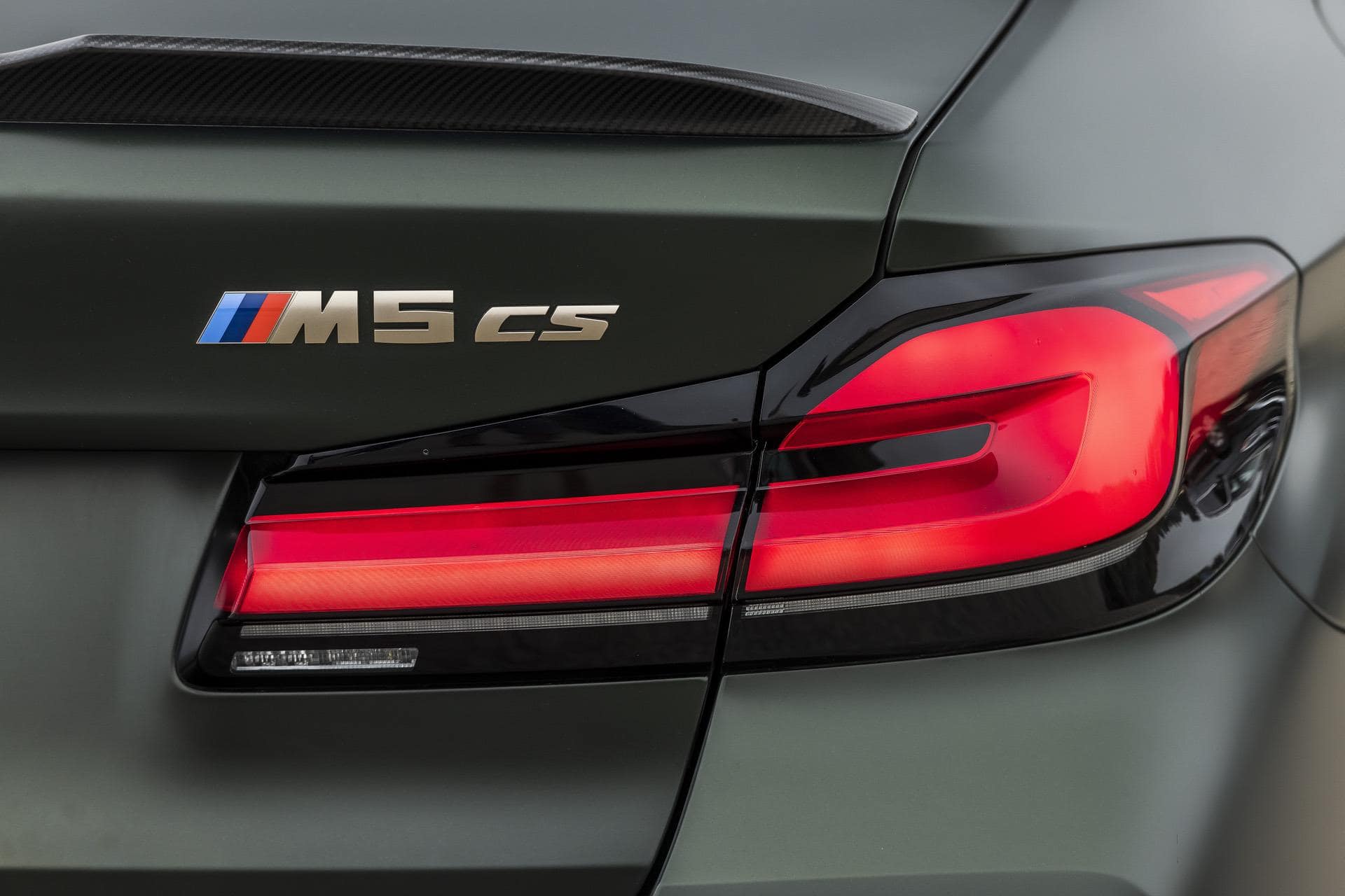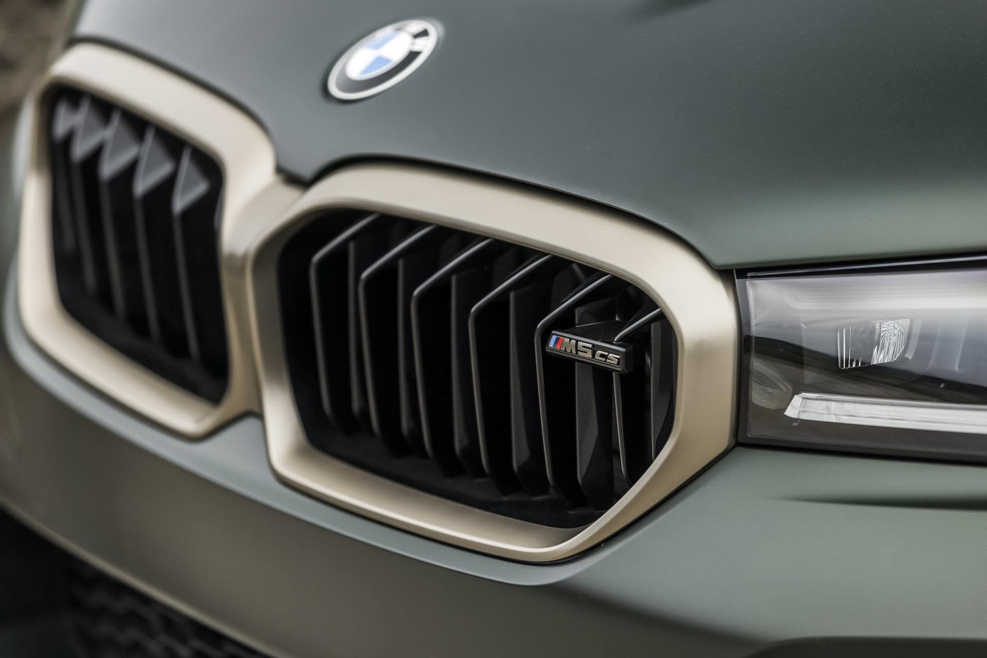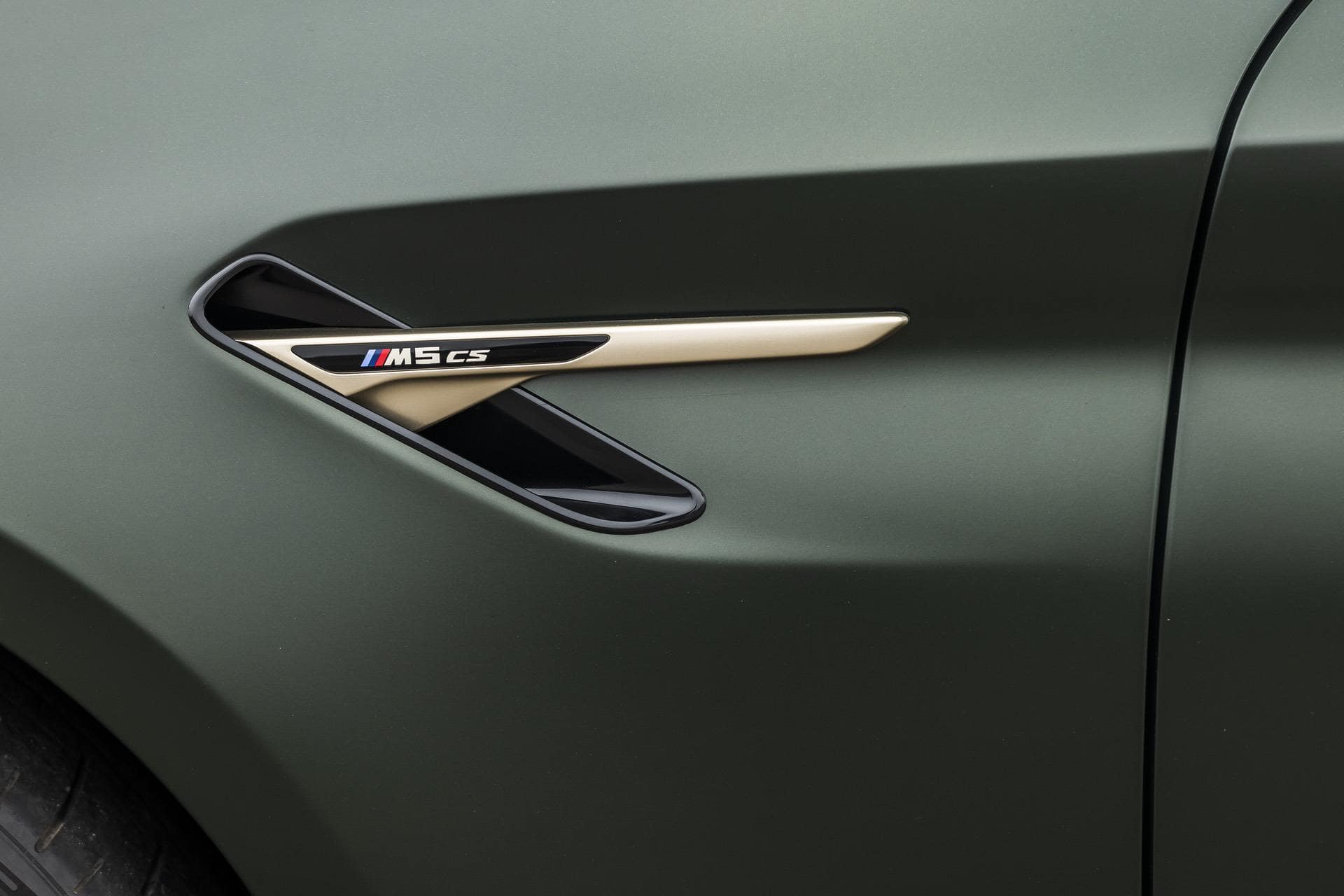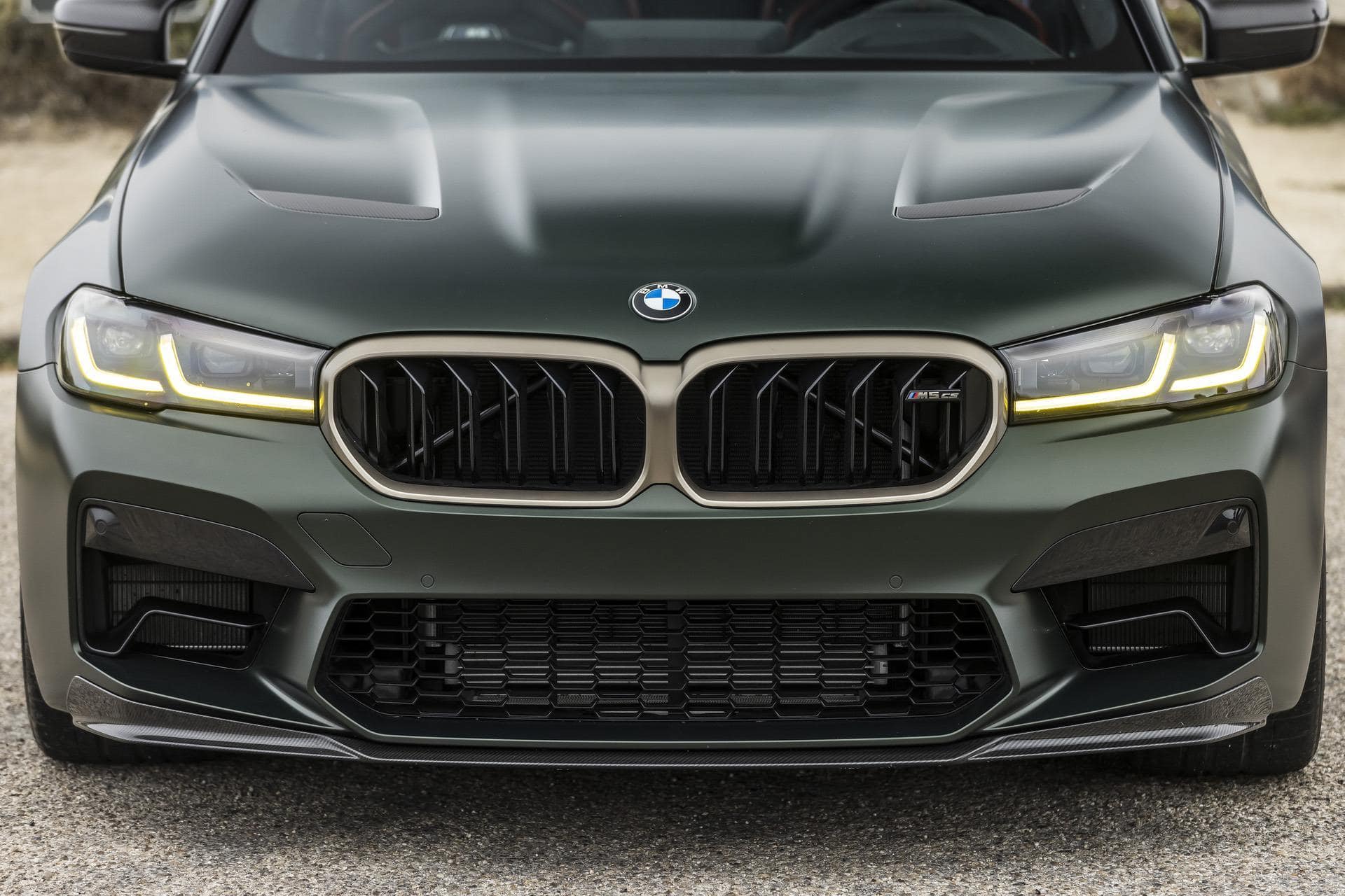 For CS-duty, the BMW M5 has been beefed up and it looks much meaner. That new carbon fiber hood is as aggressive as it is light, with a large hood bulge, a couple of vents and more creases. It also gets bronze accents on the kidney grilles to match the wheels, carbon fiber aero, a carbon fiber rear lip spoiler and a new and beautifully sculpted diffuser. It even gets killer yellow headlight accents.