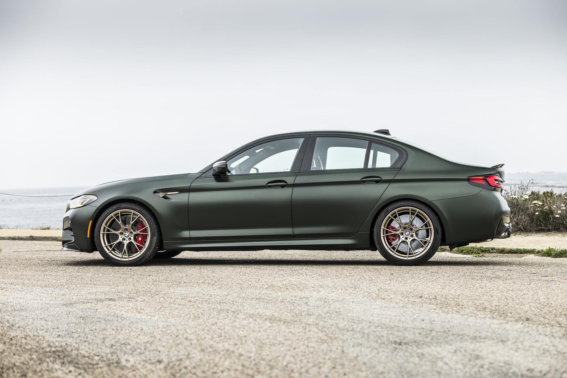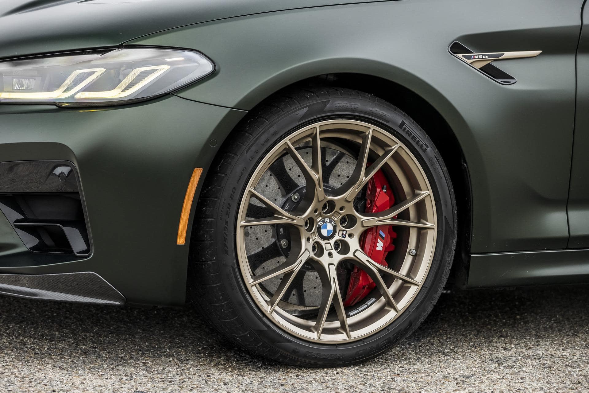 The BMW M5 CS comes in three colors. The standard color is Brands Hatch grey metallic. The two optional BMW Individual colors are Frozen Brands Hatch grey metallic and Frozen Deep Green metallic. It’s the latter one that’s arguably the best of the bunch. The interior comes in but one color scheme — black with red accents. If you want gold brake calipers instead of red ones, you can have those at no extra cost. Yet, we’re glad that BMW picked the Frozen Deep Green Metallic as the launch color.