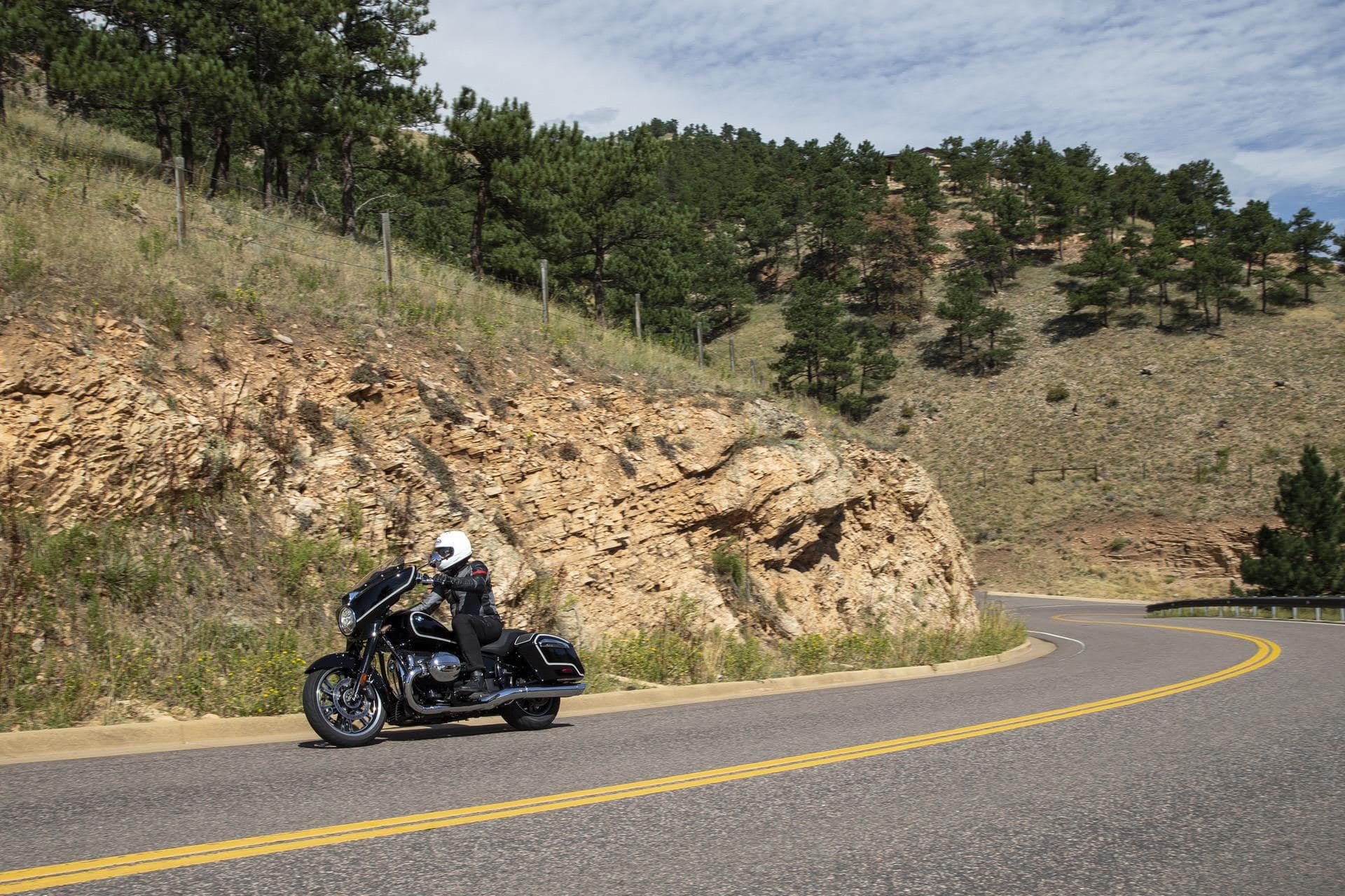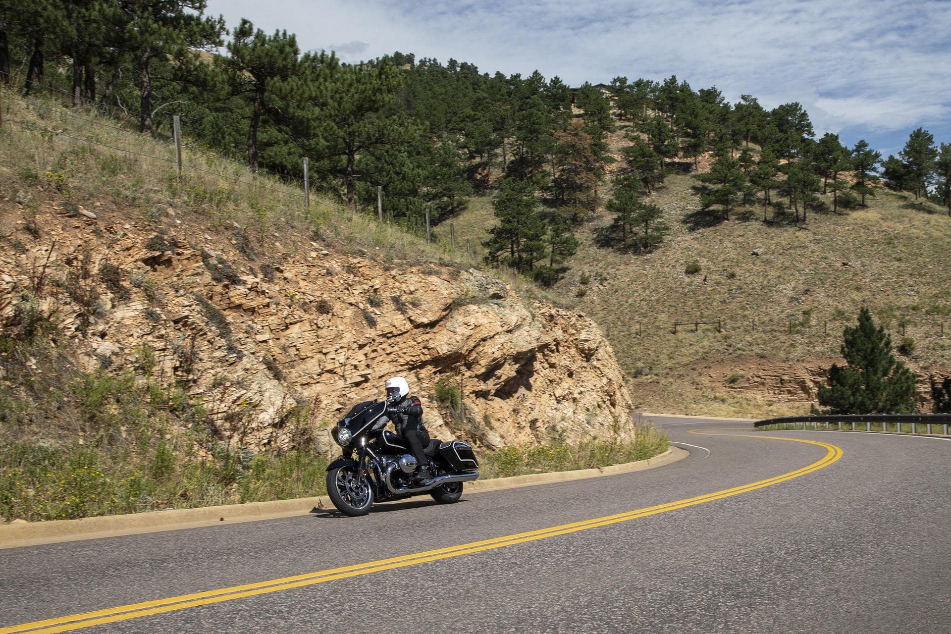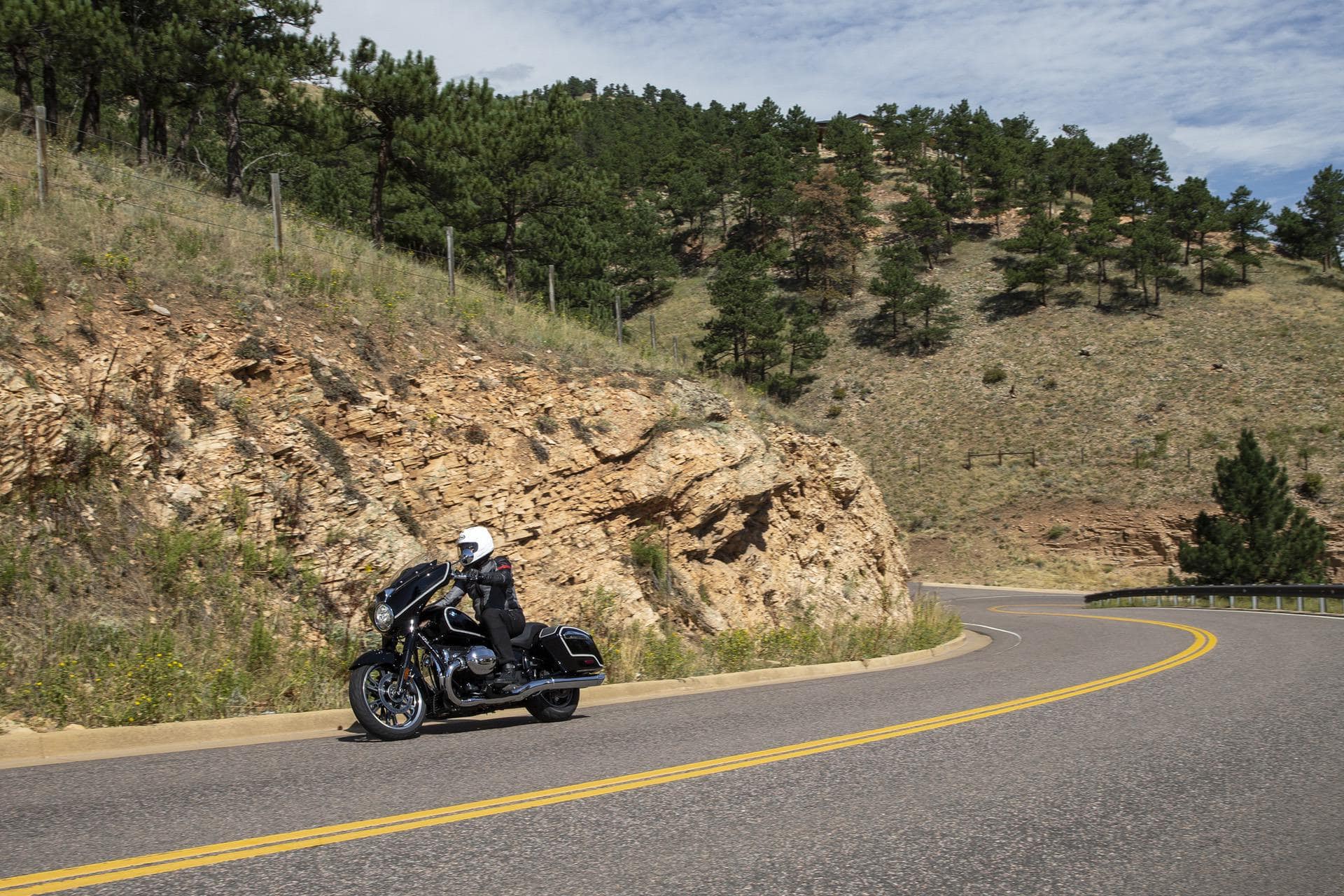 At the recent launch, BMW Motorrad put together a route designed to show off the laid-back yet nimble personality of their new R18 versions.  During the morning rush hour, we headed off from the Cherry Creek area of Denver with bright skies and climbing temps.  The timing provided an opportunity to feel how the bikes handled in stop-and-go urban traffic.  As expected, the sheer size and weight of the bikes didn’t make for the nimblest of city companions, but once out on the open road, through Golden and up to Boulder, the bikes came into their own.  The load-leveling rear suspension always felt planted to the often-questionable pavement.