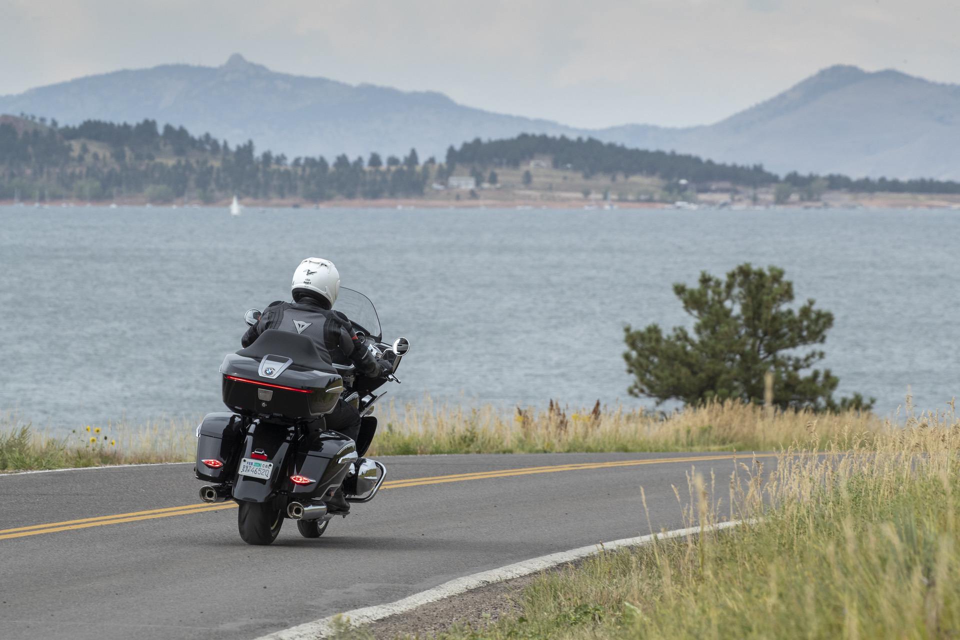 At a stopover at the iconic Stanley Hotel in Estes Park, several admirers approached and responded enthusiastically to the bike’s design.  Of the available paint finishes, a particular favorite of onlookers was the “Option 719 Galaxy Dust Metallic / Titanium Silver”; think iridescent purple and silver, which shimmers from violet to turquoise blue in the sunlight.  It is easily the most striking factory paint finish on any motorcycle I’ve seen, and justifies the $2400 upcharge for owners looking for something unique.