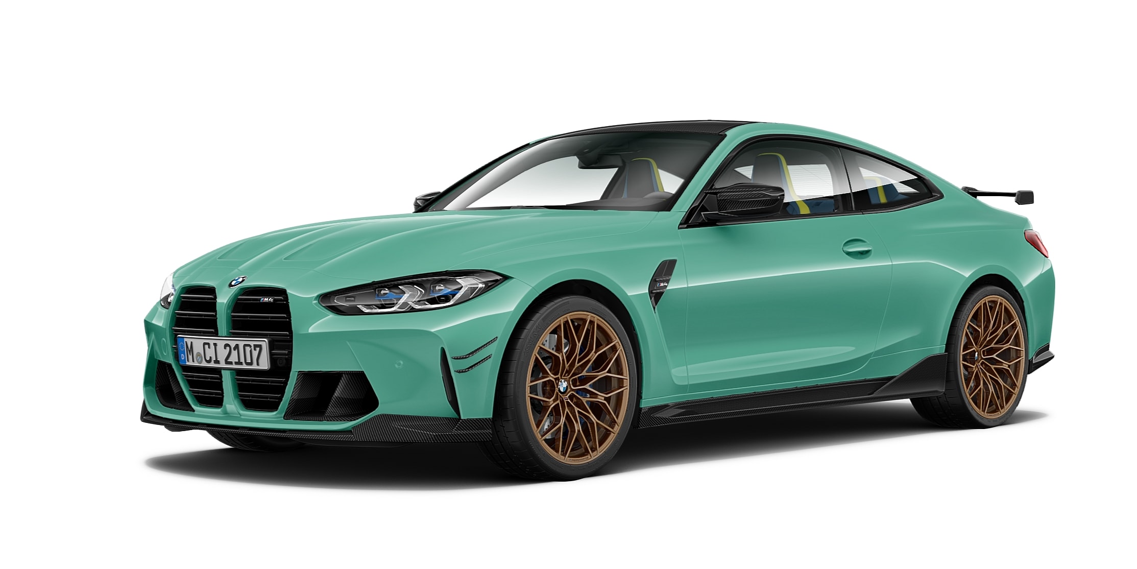 Seen here at the BMW Welt, the BMW M4 Competition look surprisingly good in the Individual Mint Green paint. Its vibrancy contrasts nicely with the black accents and really makes them pop. Not only that but it also sort of takes your eyes off the massive grille, which eases the visual impact of it. And because the color is so easy on the eyes, it sort of just brightens up the entire car.