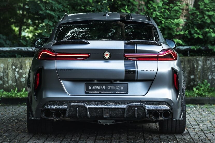 In addition, MANHART combined a bonnet, also made of Forged Carbon on the MHX6 700 WB project car, which displays its fiber structure on clear-coated air vents. The rest of the body is wrapped in a “Matte Charcoal Metallic” full wrap with gloss black contrasting MANHART decals.