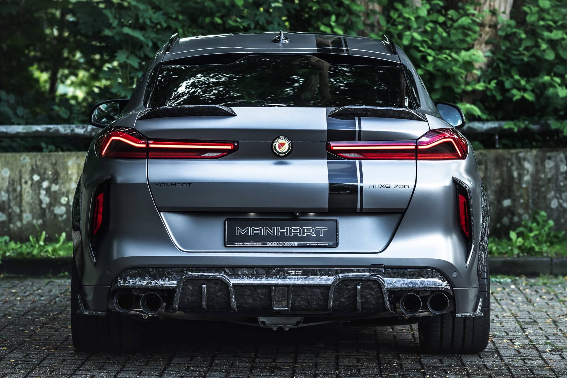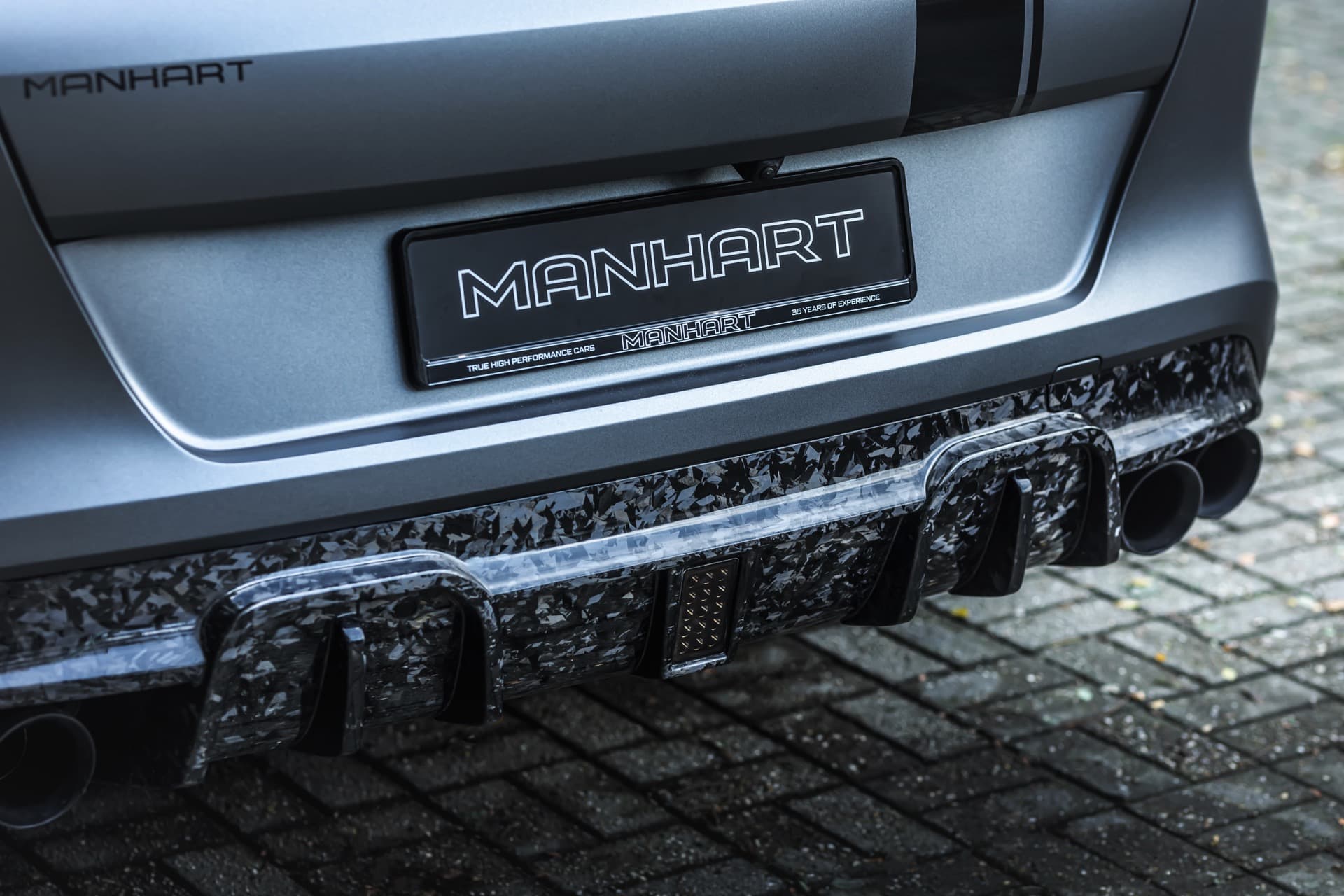 The MHX6 700 WB customer also gets a choice of four 100-millimeter tailpipes of the MANHART stainless steel exhaust system with valve function and ceramic-coated or carbon-coated tailpipes. Optional (without TÜV, for export only) are MANHART Race downpipes without catalytic converters as well as OPF-Delete replacement pipes and OPF/GPF-Deleter.