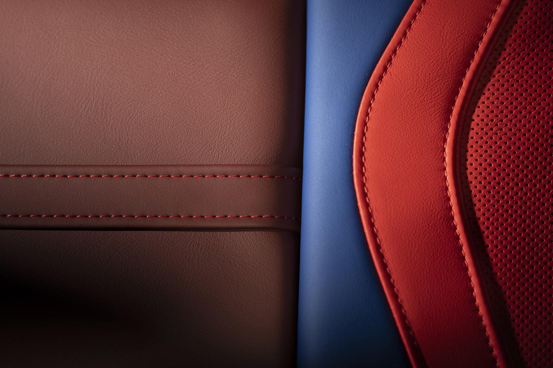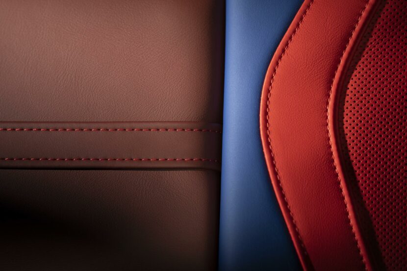 The interior sports high-end materials, fine leather and a cupholder lid with an edition badging and the artist’s engraved signature. The seats are made up of the striking red and blue colors of the M brand.