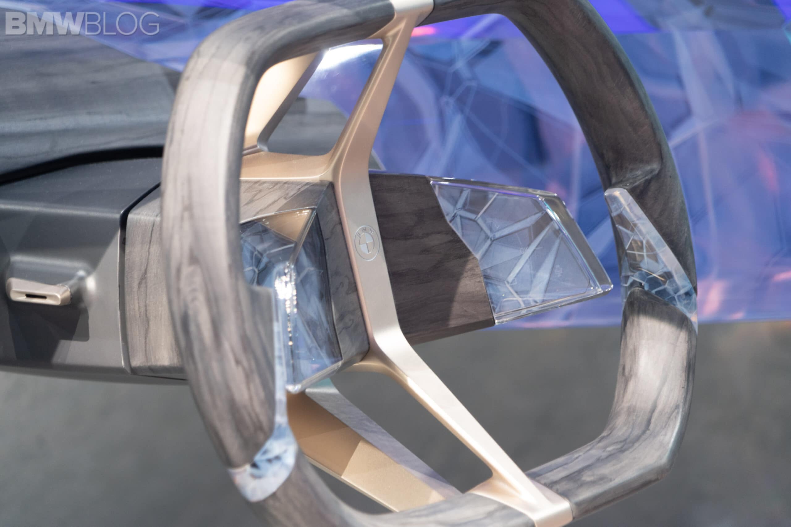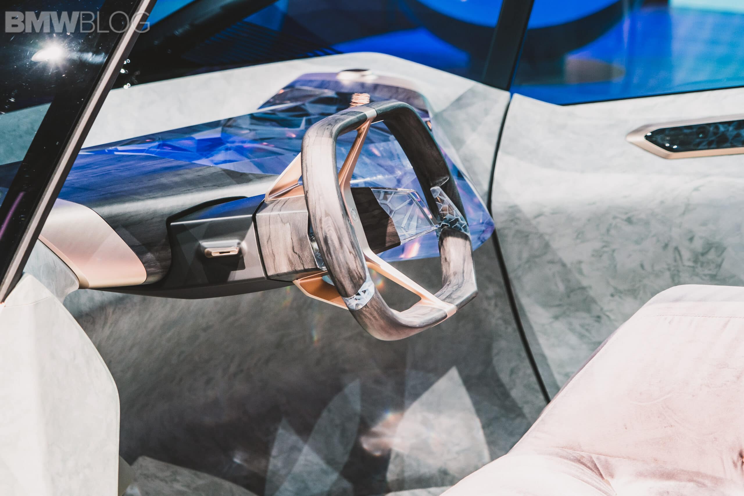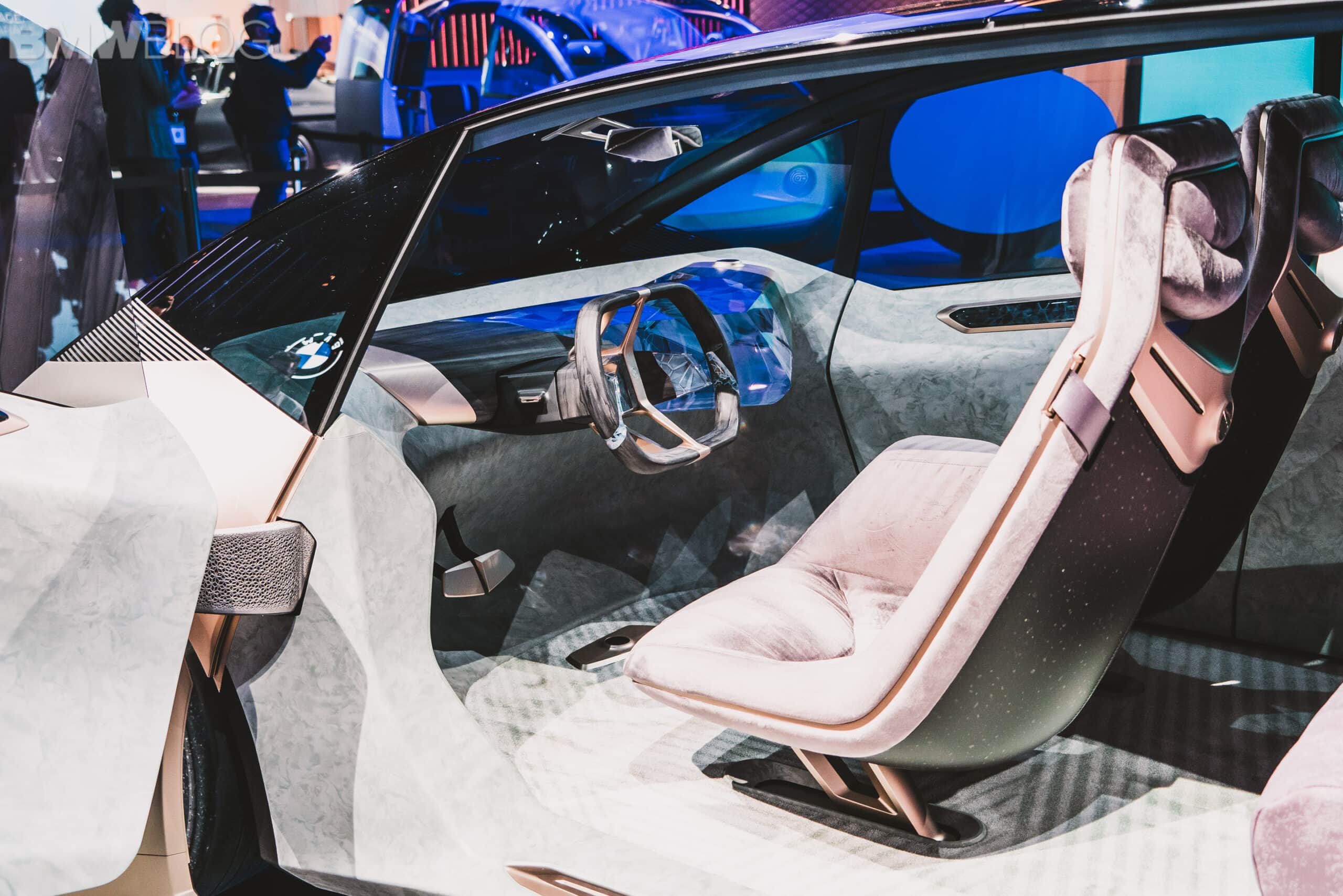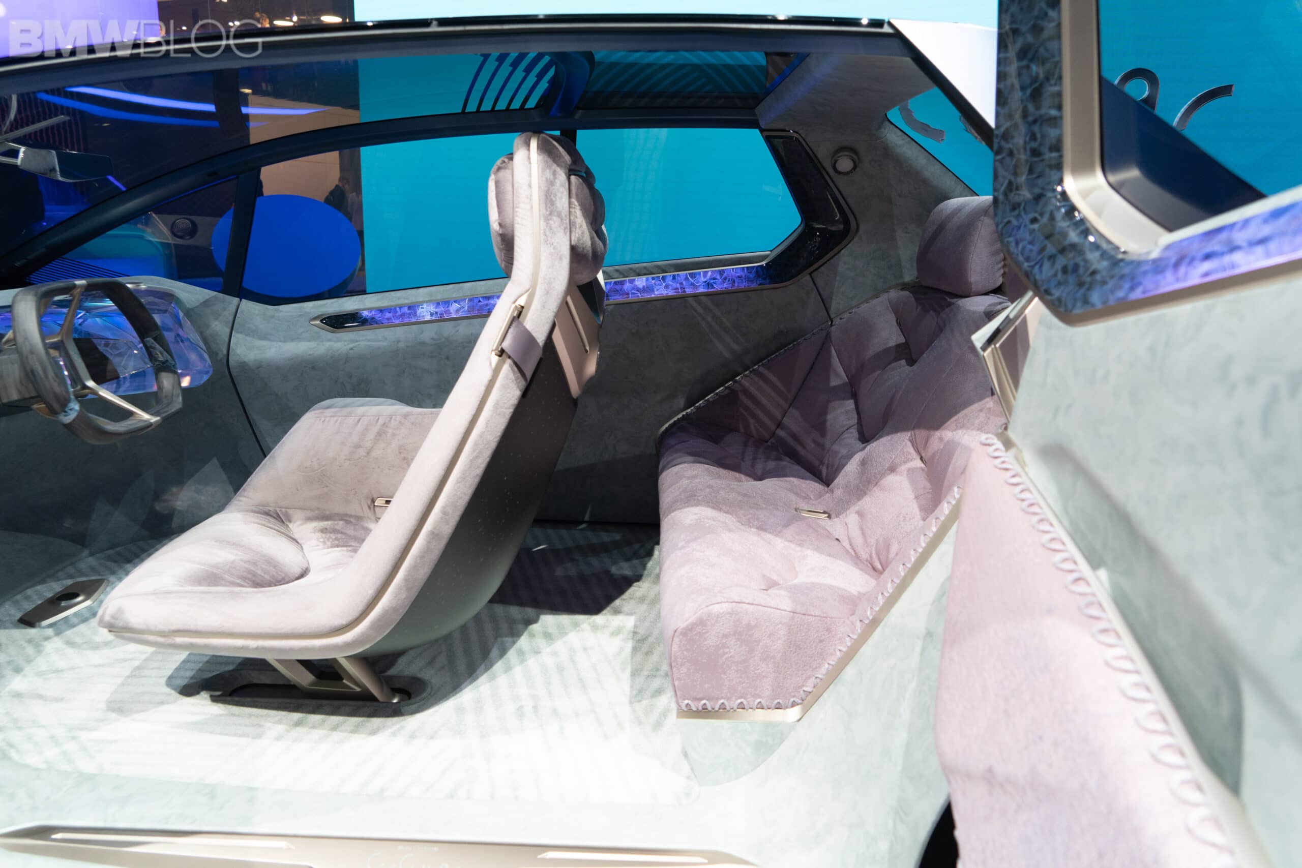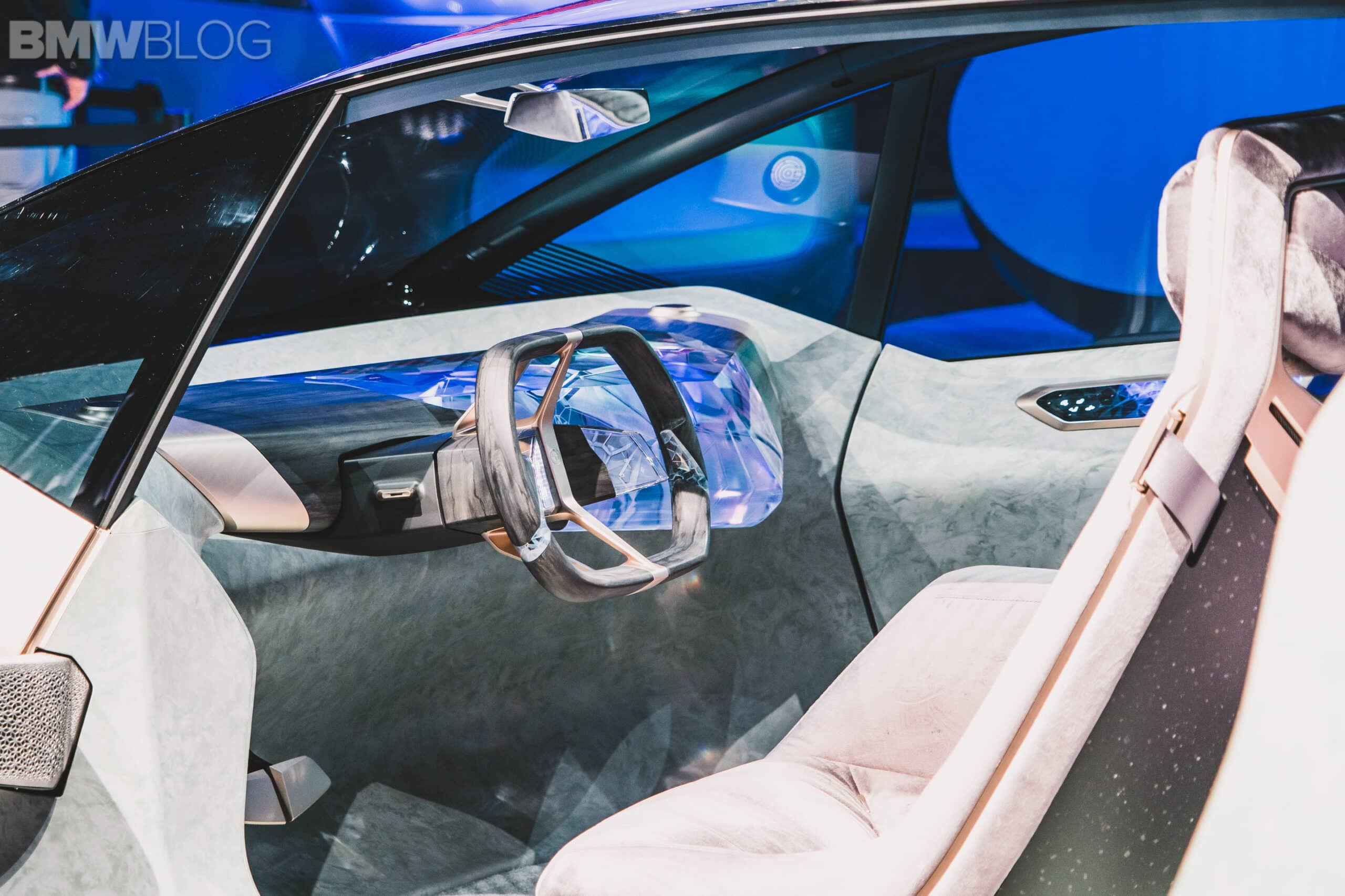 Inside, it looks like a Phillip K. Dick fever dream, with interactive glowing crystal pieces on the dashboard that have nerve-like lighting elements, making the look like they’re thinking. Its seats are thick and plush, made from recycled fabric. It even features a line of the aforementioned crystal material that accentuates the car’s Hofmeister Kink from the inside. The i Vision Circular truly has the most ambitious interior ever fitted to a BMW, for better or worse.