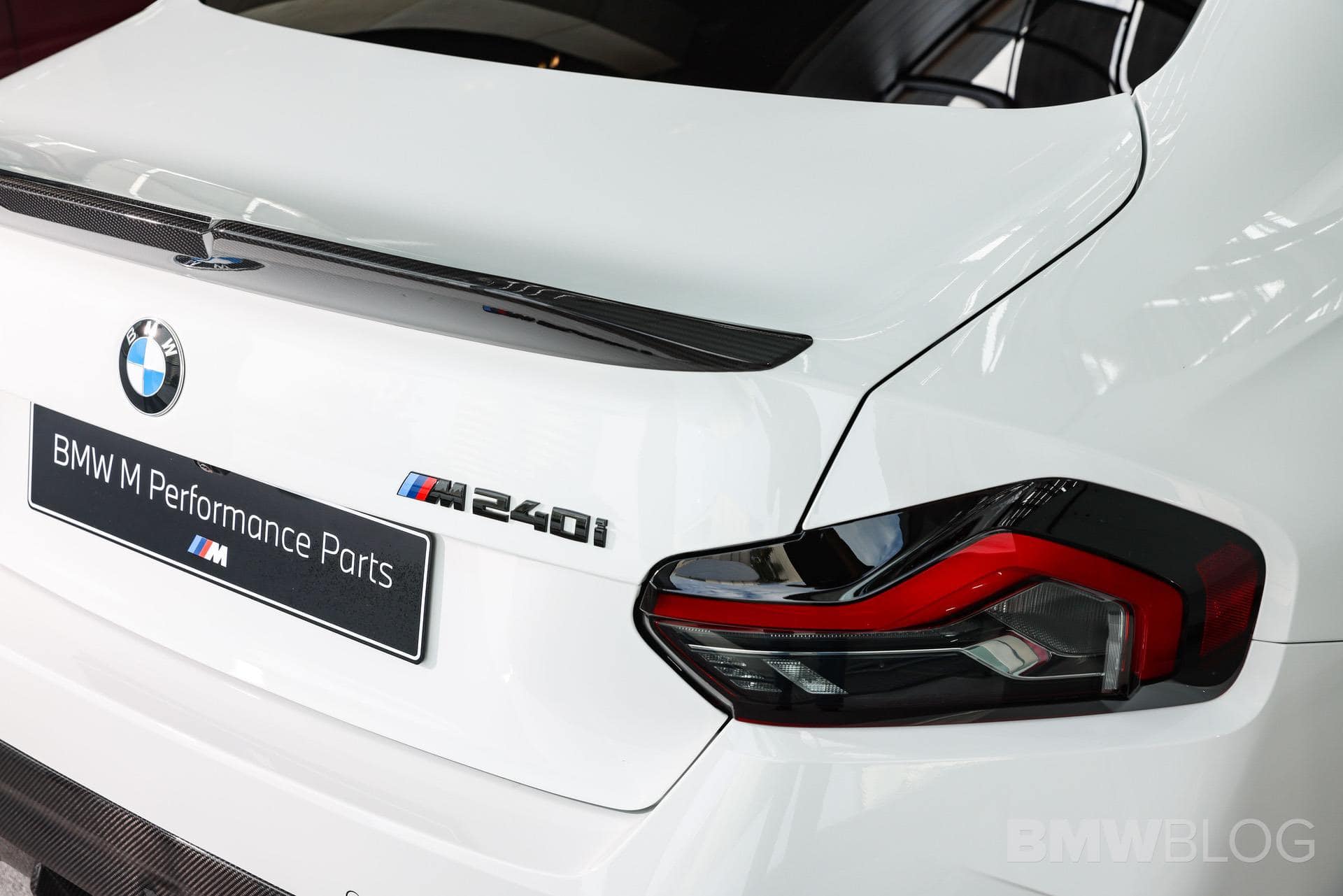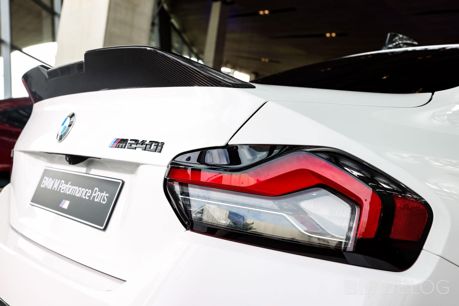 The M Performance Parts for the new BMW 2 Series Coupe are finally getting a full preview. Earlier today we published an exclusive set of images showing the entire suit of aero and aftermarket parts for the G42 2 Series Coupe, and now we’re following up with some real life images from the BMW Welt.