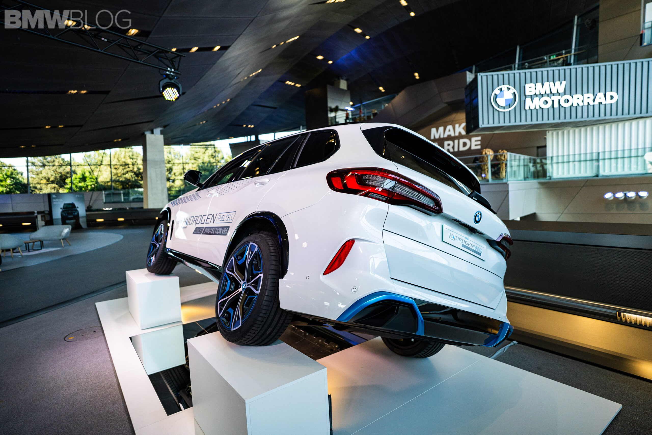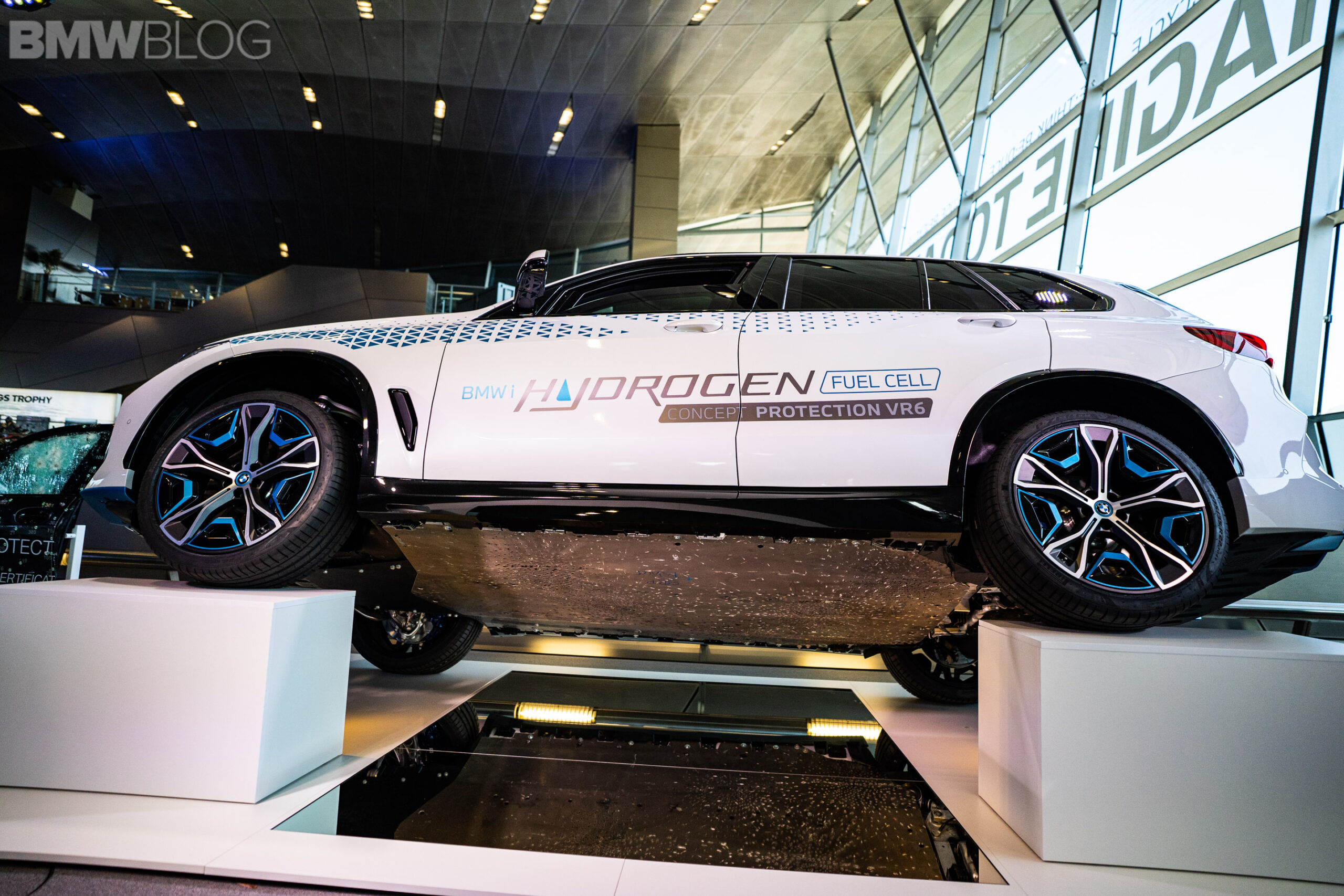 One important aspect of any armored car, especially the BMW iX5 Hydrogen, is armor plating for its undercarriage. Armor needs to be put underneath the car to protect passengers and drive components from hand grenades and other explosives. According to its VR6 protection rating, the iX5 Hydrogen Protection is also rated to withstand 15 kg of TNT from four meters away. BMW claims the iX5 Hydrogen Protection is just as safe as the standard X5 Protection, despite its more explosive fuel cells.