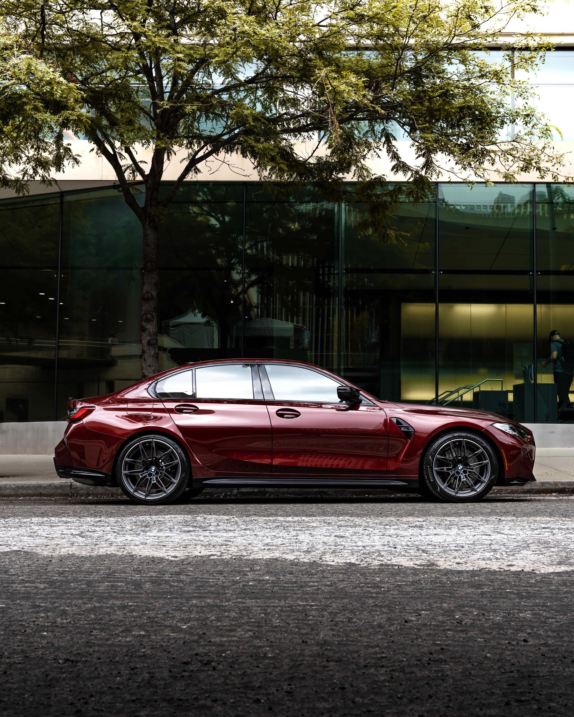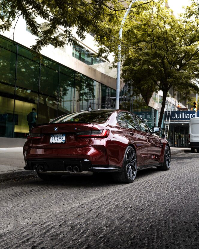 We’ve seen the G80 BMW M3 in a lot of unique BMW Individual colors. However, this is the first time we’re seeing it in Aventurine Red. Typically, Aventurine Red is used on premium, luxurious cars. For example, I tested a BMW M550i wearing that very same shade of red. That’s where the color works best, though, on larger luxury cars. So how does it look on a high-performance sport sedan?