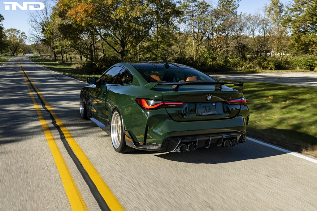 IND Distribution set up shop 15 years ago and will be heading to SEMA next week to celebrate the milestone with a new build based on the 2021 BMW M4 Coupe. What used to be an Alpine White G82 is now finished in a lovely shade of British Racing Green contrasted by the 20-inch BBS wheels with gold accents to make a bold statement. The paint choice was inspired by the European E36 M3 GT as well as the AC Schnitzer CLS II.