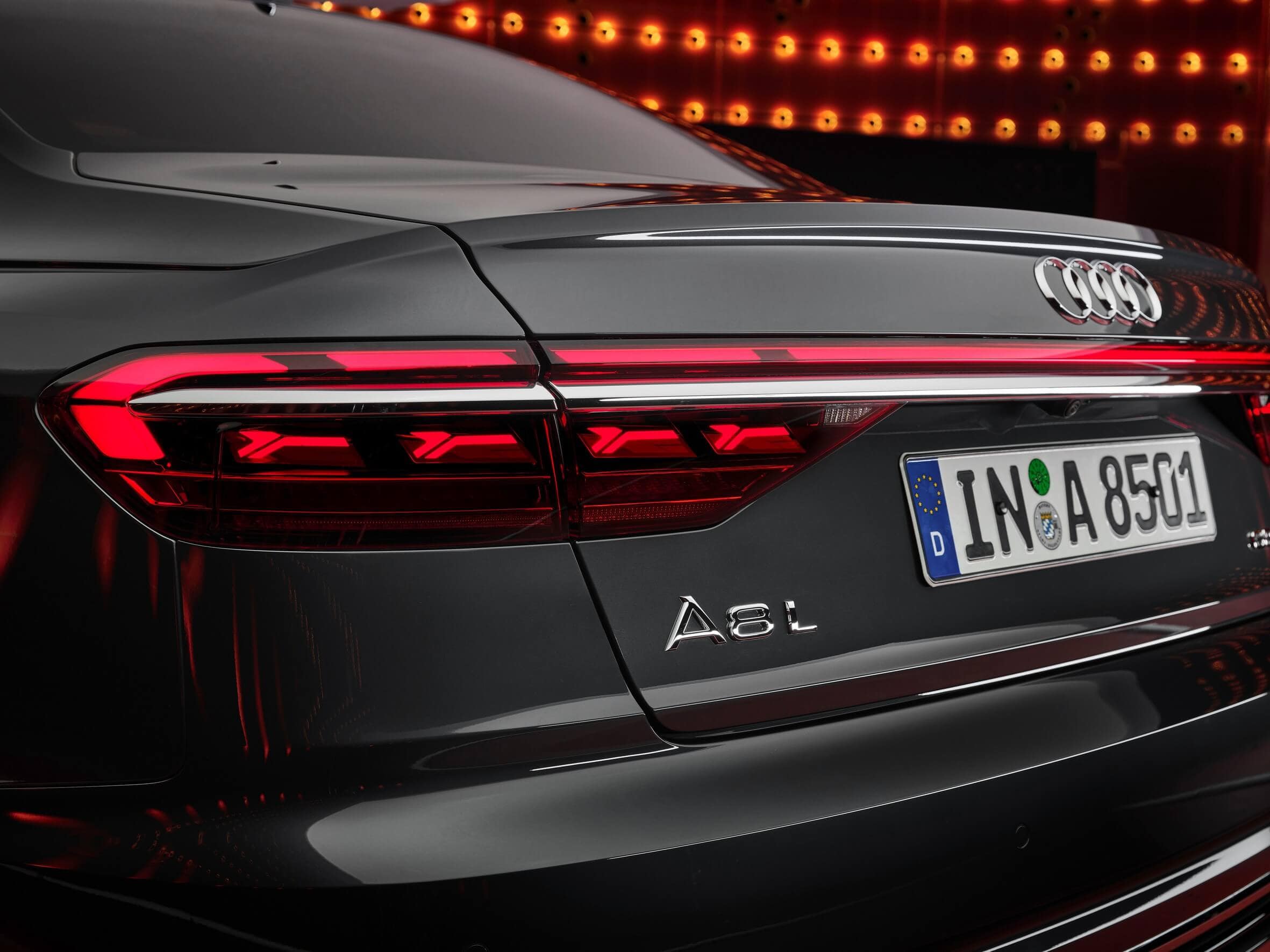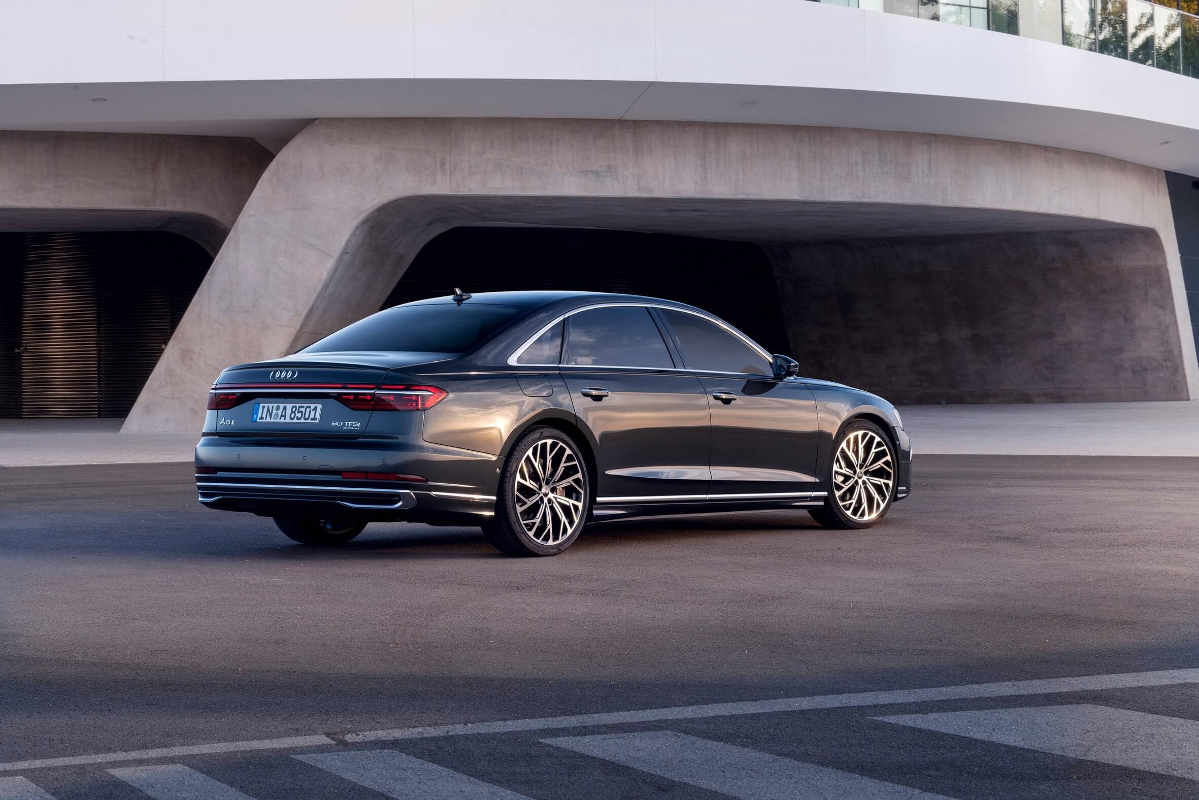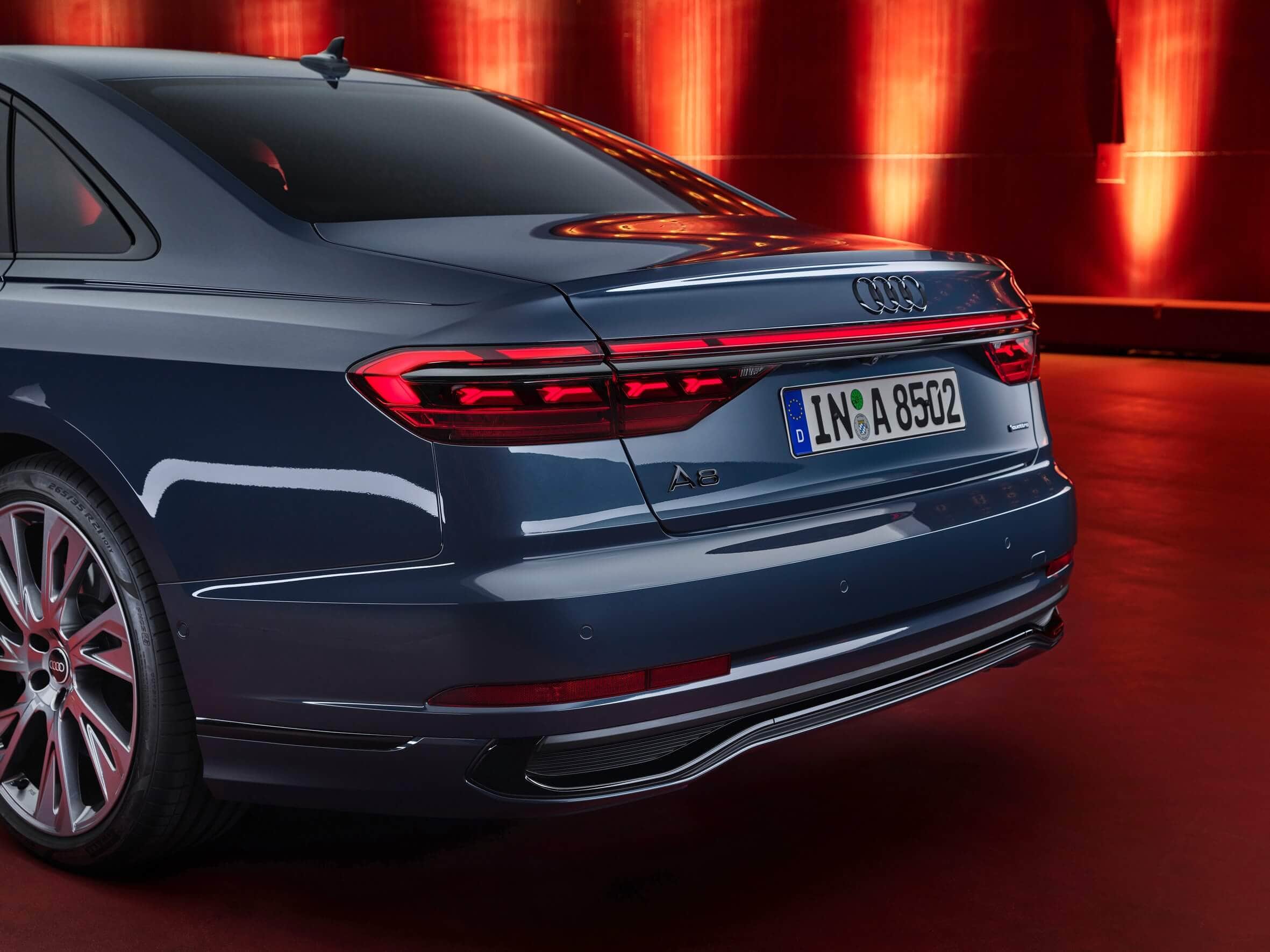 All four flavors of the Audi A8 feature reshaped digital matrix LED headlights with fresh graphics in keeping with the latest premium products carrying the Four Rings. As if the front end wasn’t imposing enough, the singleframe grille is now slightly wider than before. At the back, fancy OLED taillights are part of the standard equipment and can even be had with two selectable light signatures, plus a third option for the hotter S8 model.