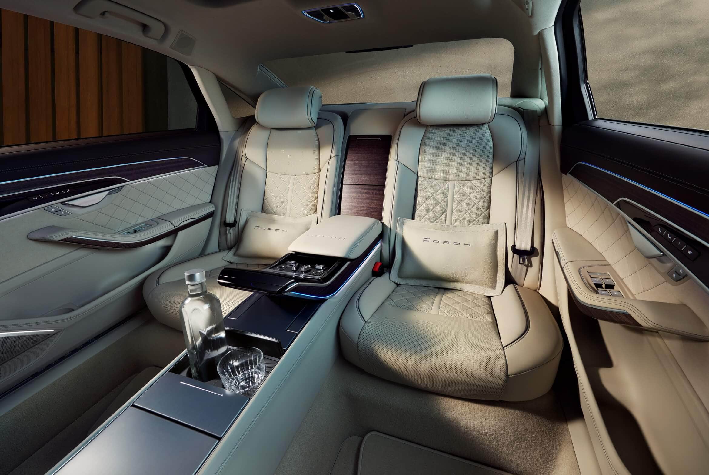 The facelifted A8 still looks just about the same on the inside as Audi has basically carried over the interior from the outgoing model. However, the Horch ups the luxury ante with more diamond quilting, deep-pile floor mats, and “Horch” logo embossed in the cushions. Naturally, being even longer than the A8 L, it offers all the rear legroom you could ever want.