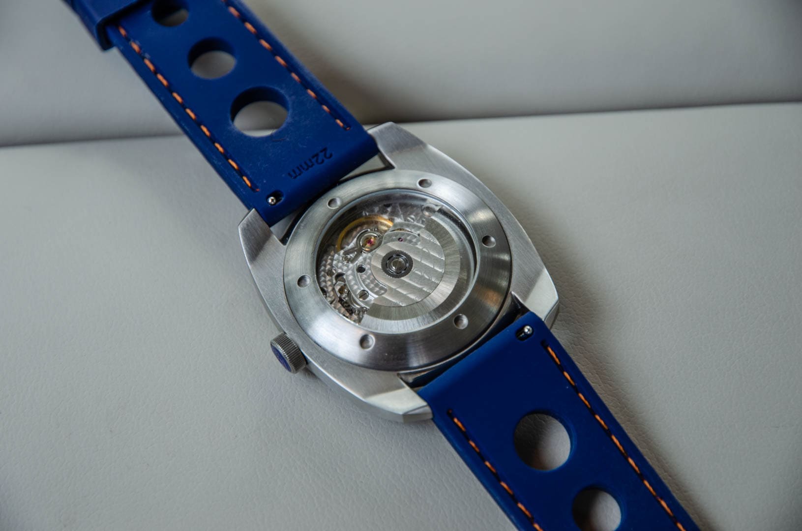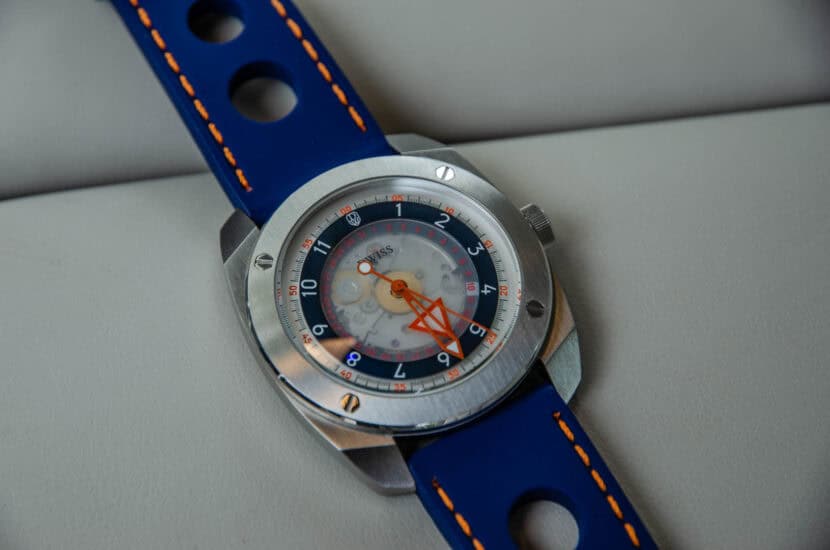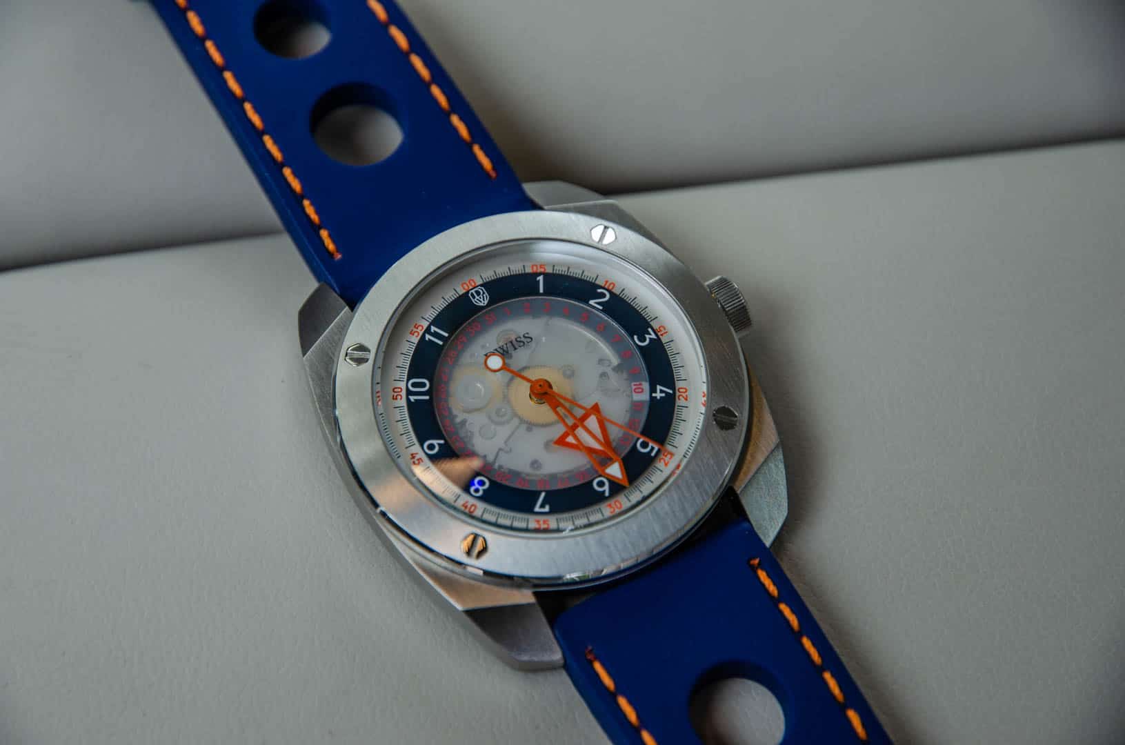 It’s also, in my opinion, the best looking of all the R2 variants. The rubber strap it came with is also blue with orange stitching. With that rubber strap, the DWISS R2 retails at $990. But the stainless steel bracelet bumps the price up to $1,140.