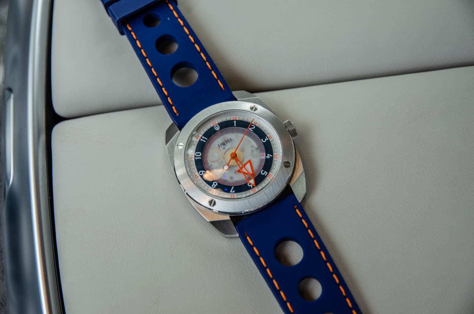 It’s also, in my opinion, the best looking of all the R2 variants. The rubber strap it came with is also blue with orange stitching. With that rubber strap, the DWISS R2 retails at $990. But the stainless steel bracelet bumps the price up to $1,140.