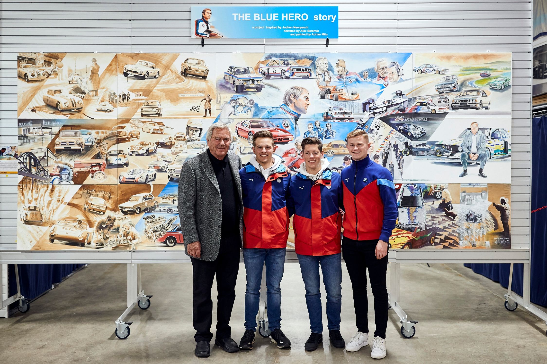 The BMW Junior Team was next taken to the BMW Car Club of America Foundation, where Harper, Hesse, and Verhagen, together with their mentor Jochen Neerpasch, who accompanied them throughout the trip, saw a fascinating exhibition of antique BMW vehicles and other BMW collectibles. Jochen Neerpasch’s motorsport career was commemorated with a beautiful wall artwork, dubbed “Blue Hero“. The group finished the night with a cookout with Verhagen’s family in Mooresville, South Carolina, near Spartanburg.